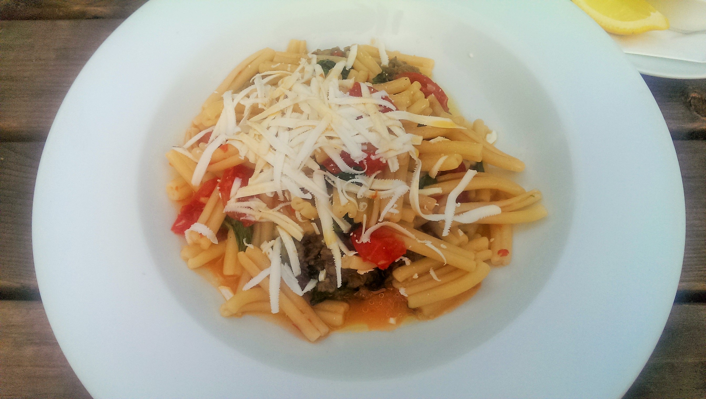This is probably the right place to mention the service, which was the closest my evening came to letting the side down. Sitting outside meant that you ordered at the bar – and when I did Santino, who was working behind the bar, was charm personified and clearly a big hit with locals and diners. He could sell any of his dishes to anyone and was brilliant at bringing the details to life: the tuna cooked with orange zest, the burrata which was arriving later in the week, the salami he gets from small producers in Italy (I imagine he has built up quite a good contacts book), the ice cream which was all made there on the premises. He also lamented the end of the English asparagus season, a subject very close to my heart. The table service was a lot more erratic: the young waiter who was doing the fetching and carrying had a lot to do (serving in the garden means a lot of distance back and forth with plates) but wasn’t the canniest of workers, often bringing out food then returning to the kitchen empty handed despite our empty plates having been in front of us for quite some time. It didn’t mar the evening but I did reach the stage where I had half a mind to taken them inside myself, and that isn’t how it should be.