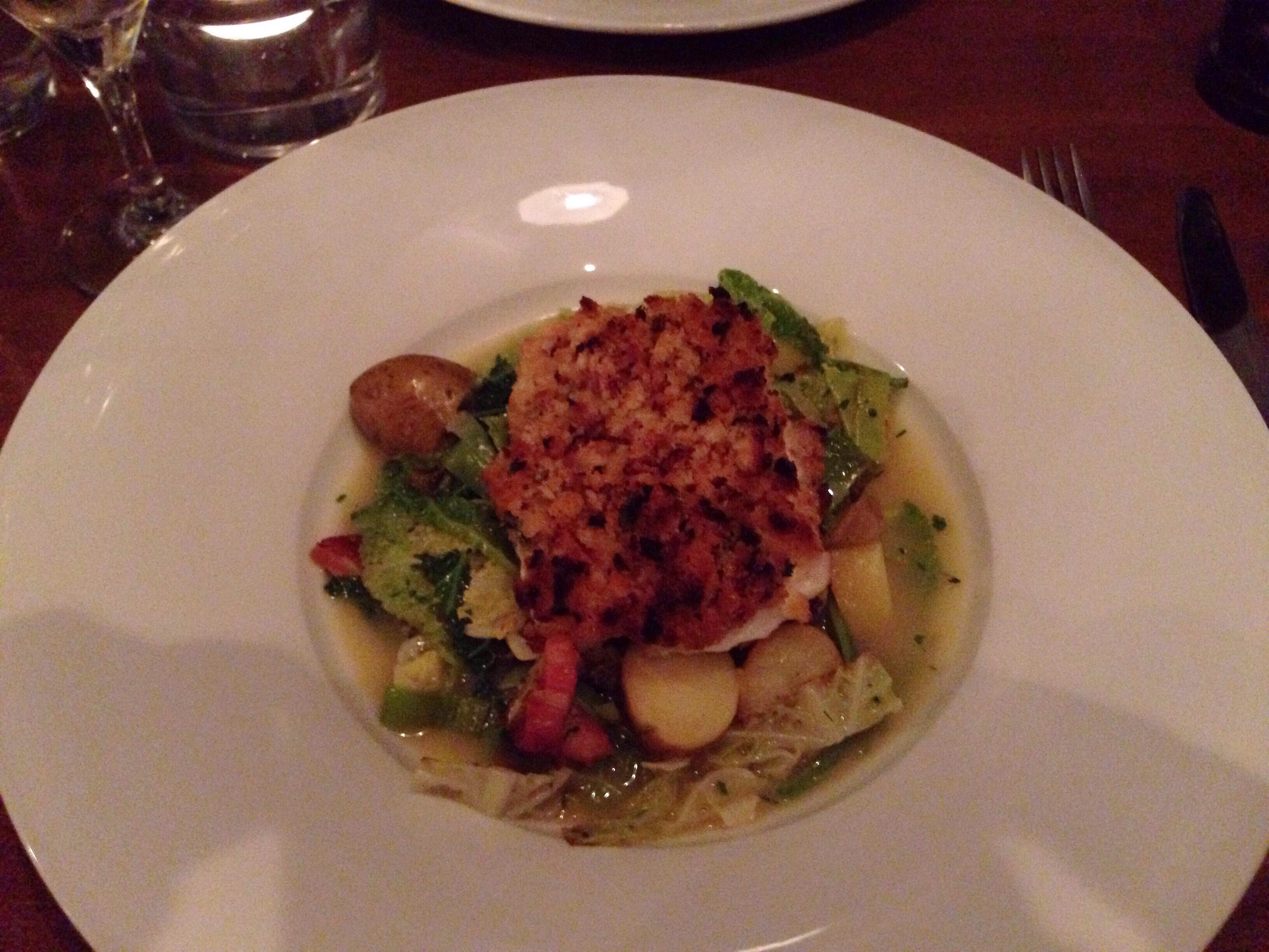 Herb crusted hake was less successful. It was a pleasant – if not massive – piece of fish and the herby breadcrumbs on top of it were lovely, although I was surprised to find skin on the bottom of the fillet. But everything else didn’t quite work. It came with “bacon lardons” (are there any other kind?), little halved new potatoes, cabbage and leek and all of them were decent if inoffensive. But the herb broth, which I was hoping would bring the whole thing together, was largely a flavourless stock. More than anything else I ate that night, or anything I’ve eaten for a while, it felt like home cooking rather than restaurant cooking. If I’d eaten it at a friend’s house I’d have said nice things, but for just shy of fifteen pounds it wasn’t something I’d rave about when eating out.