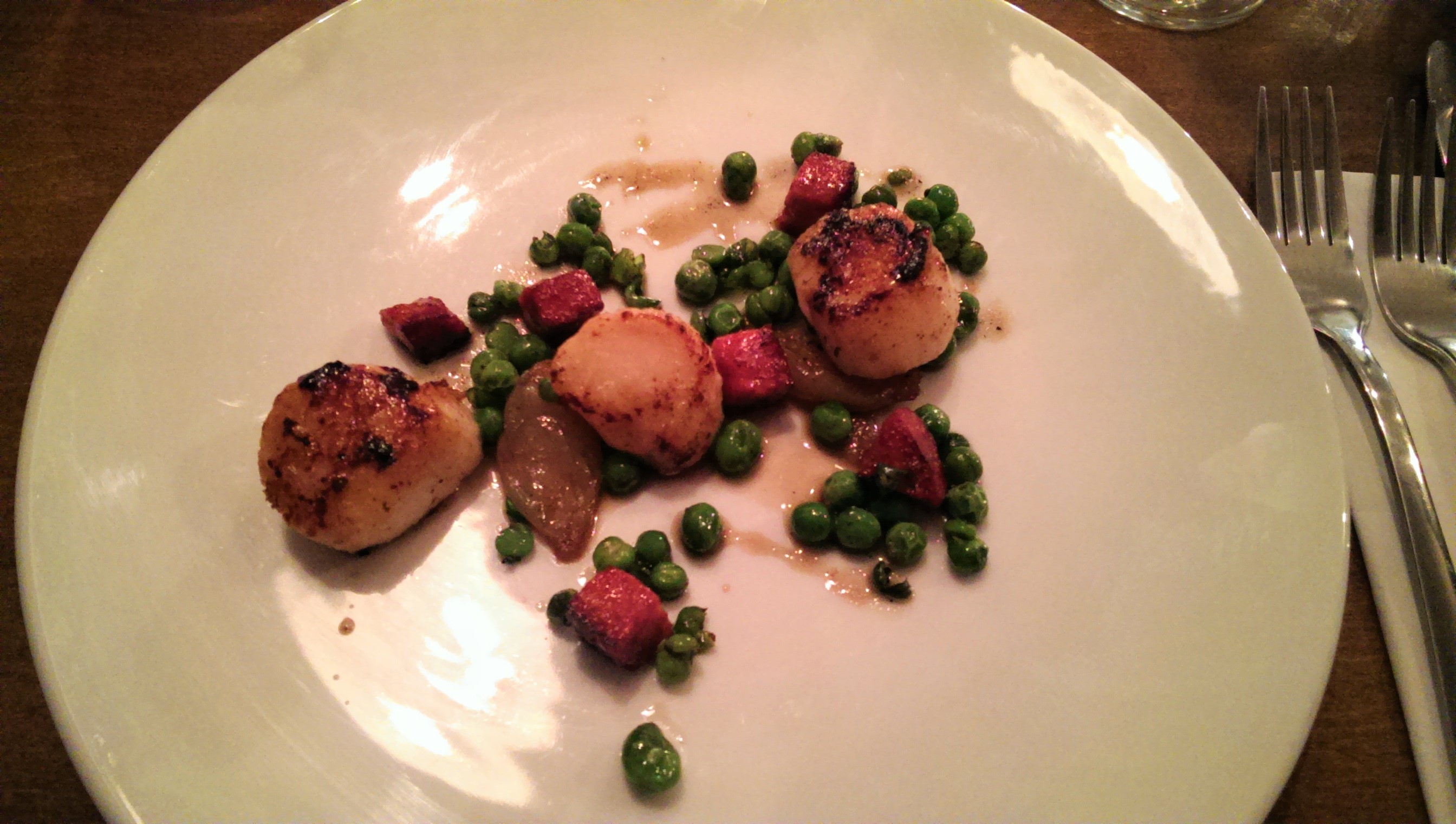 Would my prayers be answered? The starters gave me my first clues. Pan fried scallops came with peas and onion, crispy chorizo and beurre noisette, a pretty classic combination. Normally they also come with soft herbs (no, I’ve no idea what that means) but I was with my coriander-phobic companion so we missed all the herbs out to ensure there was no meltdown. The scallops – three medium ones – were pretty decent, cooked in the browned butter and nicely textured so they were lightly caramelised on the outside but still yielding within. The peas and onions and chorizo reminded me a bit of petit pois a la francaise, but without the indulgent cream which always makes me feel so guilty about ordering it. They worked quite well, especially the touch of salt and warmth from the chorizo which lifted the dish pleasantly. Not the prettiest dish to look at (it all looked a bit plonked on the plate) but a good start.