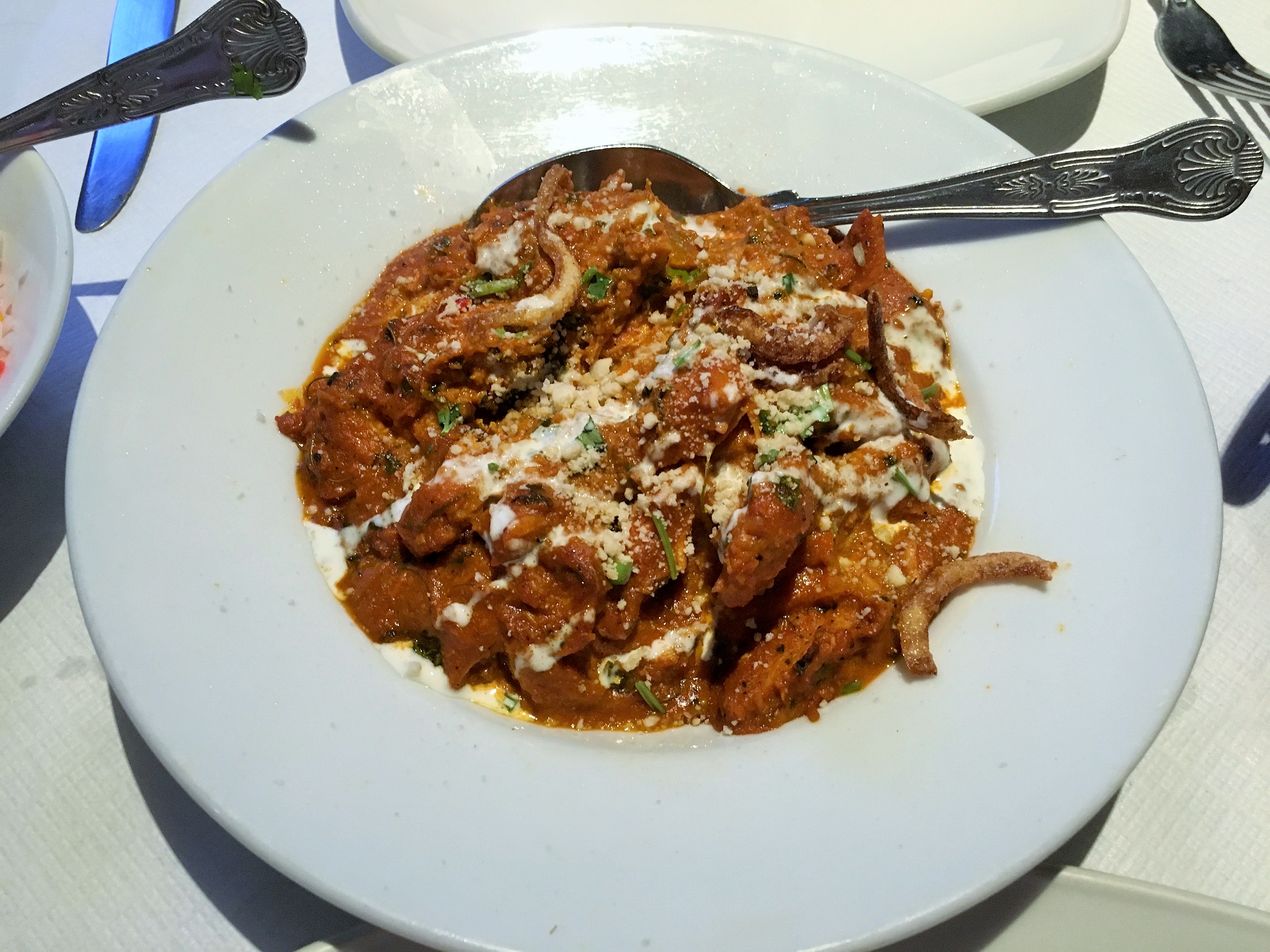 It did what it said on the tin: properly dry, the sauce condensed down to be sticky and intense. The chicken was beautifully cooked – again, on the dry side but perfectly so. And I do agree that there’s something about that sauce. It’s almost the perfect curry, I would say: the balance of spice, nowhere near overpowering, was interesting enough to appeal to people who would normally opt for the beigeness of a korma or a pasanda, while the taste was sufficiently complex that chilli demons too might give it a whirl. More fried onions, too, because that seems to be a hard habit to break. I really liked it, and I’m glad I tried it. Was it alone enough to justify a trip to Standard Tandoori? Yes, probably just about. Would I go back specifically to have it again? Probably not.
