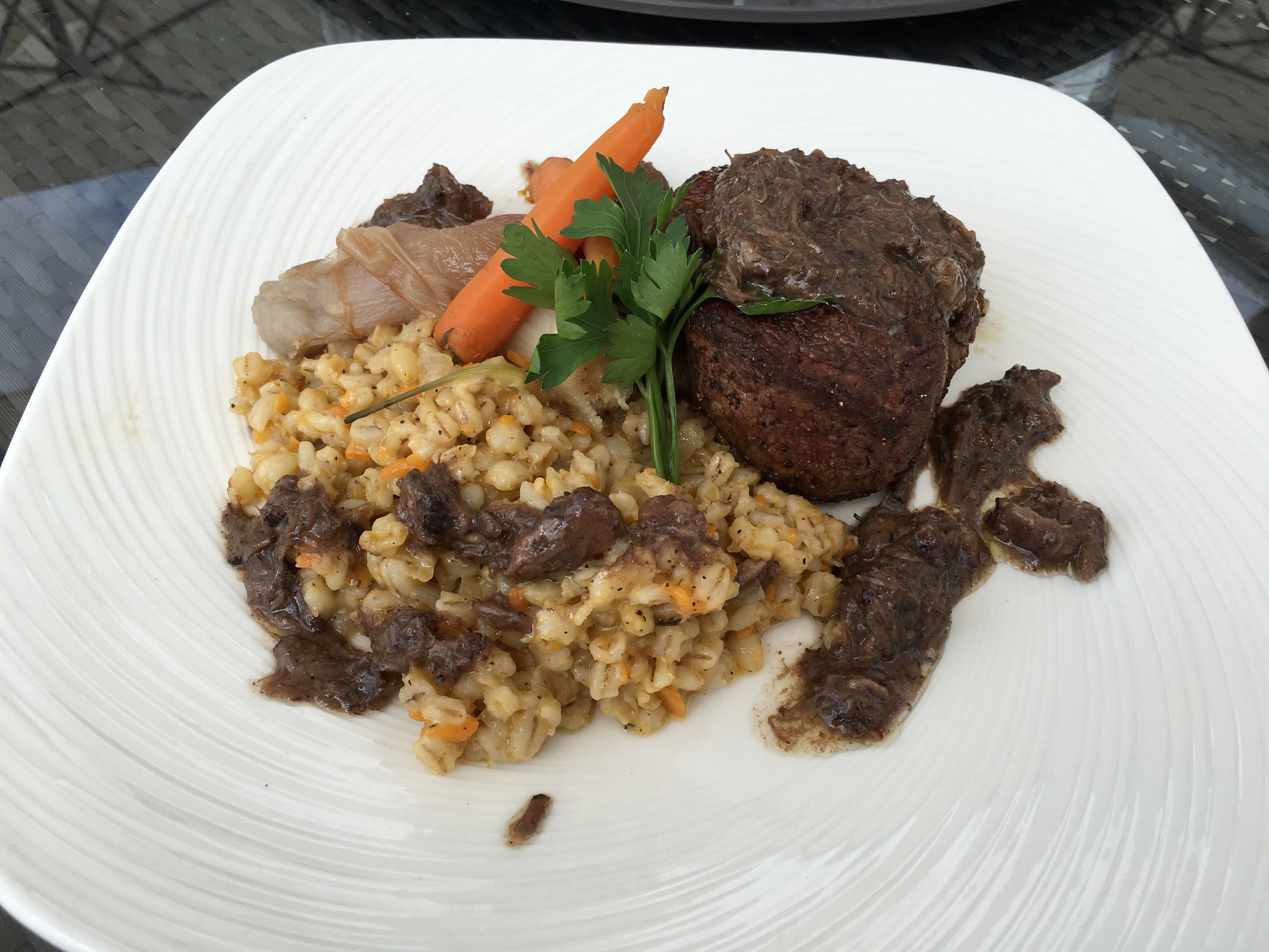 So, lots going on but did it justify all that complexity? No, not really. I could admire the creativity and all those – what’s the word they use on Masterchef? – processes, but I’d have been just as happy with a big ramekin of chicken, broth and broad beans, especially as the dish was too shallow for me to scoop up the remaining broth at the end.