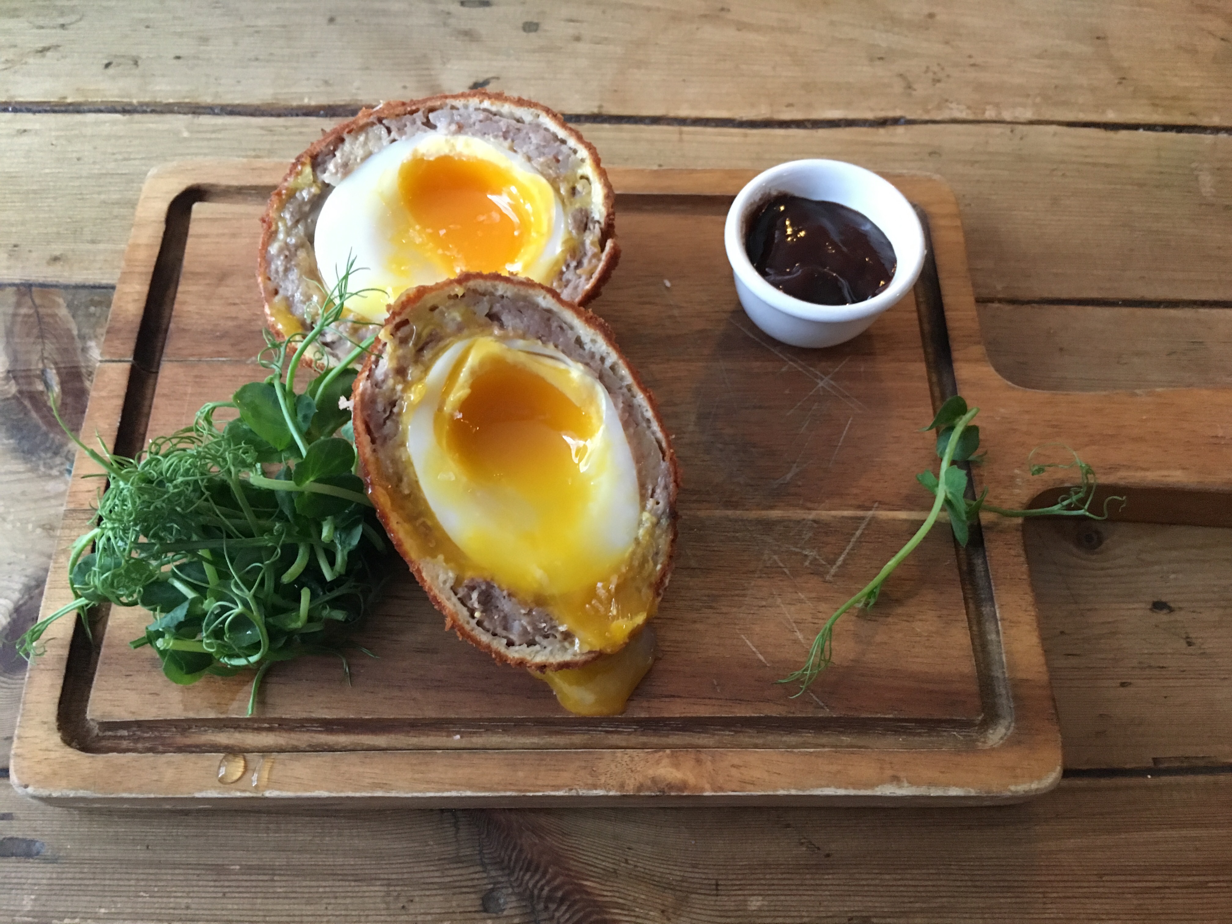 The night I went to the Lyndhurst, one of my friends was eating out in Paris at Le Chateaubriand, a restaurant which regularly makes lists of the 50 best restaurants in the world. I’ve been, and I didn’t like it, but I didn’t tell my friend that because I didn’t want to piss on her chips. But, true to form, her messages suggested that she too had been underwhelmed by the whole thing: iffy service, slow pacing and flavourless food. I sent her pictures of my scotch egg and my pork belly and the reply came back: Holy shit. I want to lick the screen. So there you go – the day I went to the Lyndhurst provoked food envy in somebody eating in one of the best restaurants in the world: Reading 1, Paris 0.