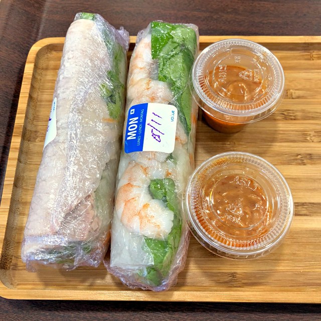 The pricing is a bit more confusing, mainly because there are a range of meal deals and, if I recall, the prices on the menu behind the counter didn’t quite match the ones on the menu in the window. With a meal deal you get either a bánh mì or a small pho with a drink (although not apple juice, apparently) and a single summer roll (they usually come as pair). This does save you a little money, although the bánh mì meal deal is more expensive than the pho meal deal. The former is six pounds, the latter six pounds fifty (or six pounds eighty, according to the menu outside).
