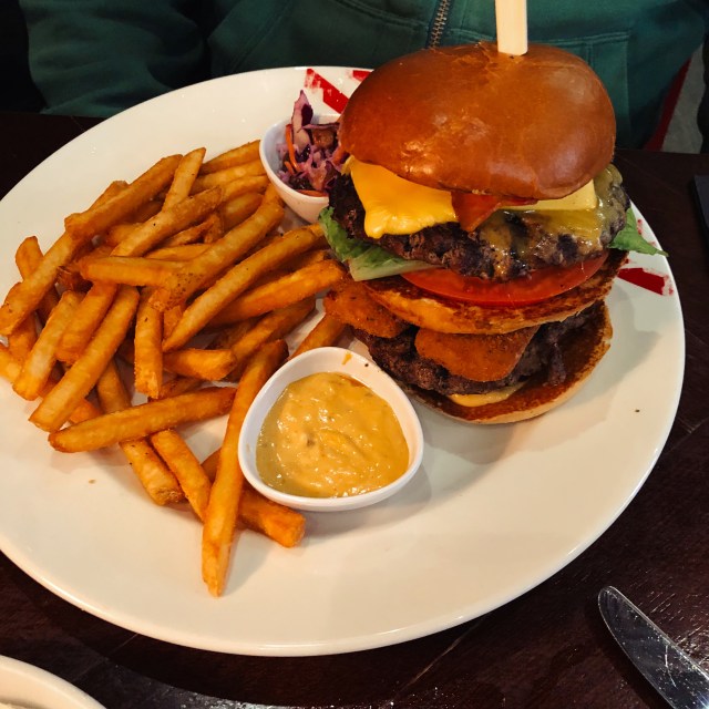 Sam’s Warrior Burger was no better. It managed to simultaneously be overcooked and lukewarm, which takes some doing but really shouldn’t be considered an achievement. The patties were a tad grey and nothing about the dish looked appetising.