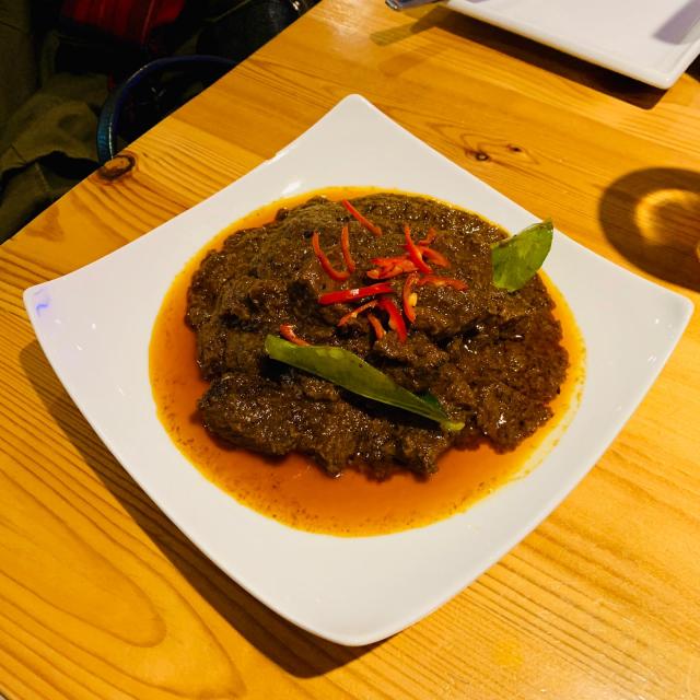 We’d also ordered a venison sausage roll, which came with home-made brown sauce. It was just under a fiver and really quite generously sized: I can be a very greedy diner, but even I would struggle to describe it as a nibble. “We have a rule in my house that whoever cuts has to choose last” said John, before dividing the sausage roll into two such unequal halves that I almost felt guilty scoffing the bigger one, until I remembered that he was having the oxtail croquette and I wasn’t. It was phenomenal, the venison lean and dense and again with a beautiful whiff of wintry woodsmoke. The brown sauce was heavenly, although the sausage roll really didn’t need it. “It almost has too much sausagemeat” said John; I managed to avoid doing an obvious double take.