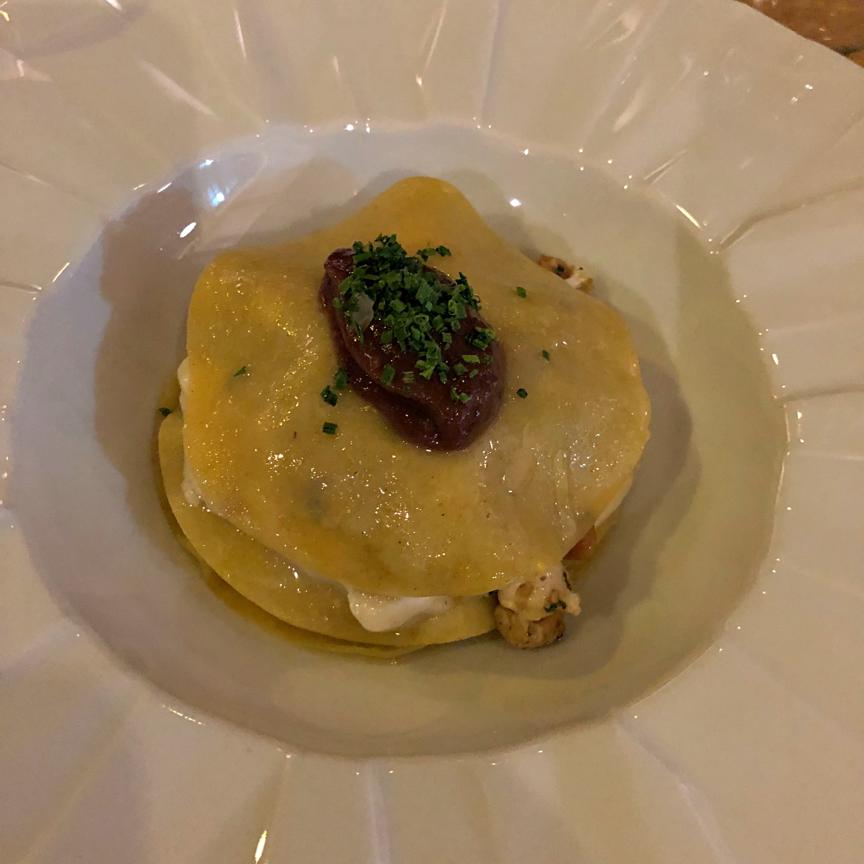 I had chosen the cauliflower lasagne, and although it didn’t live up to the croquette it was an intriguing dish. More of an open lasagne, really, but I wish there had been more of the cauliflower and less of the hazelnut, which was billed as a “hazelnut crumble” but felt coarser than that and took over the whole thing more than I’d have liked. It was saved by a truly astounding caper and raisin puree which simultaneously managed to taste of both and neither, a mind-bending sort of agrodolce which transformed the dish into something rather special. I don’t even like raisins, but I could have eaten this until the cows came home.