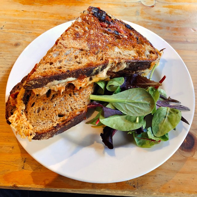 The classic dish is the chicken wrap – lots of chicken thigh spiced with ajika, served in a well-assembled wrap packed with salad, baje (a sauce made from walnut), salad and lemon juice. Anybody who has had it at Blue Collar knows just what a good dish this is, and the Geo version comes close to hitting those heights. But there are also aubergine wraps, all sorts of skillets using the café’s excellent sourdough and of course, the wonder that is khachapuri – a flatbread stuffed with a gooey cheese which is a blend of cheddar, mozzarella and feta (made by the café, because they can’t get the Georgian cheese which is normally used).