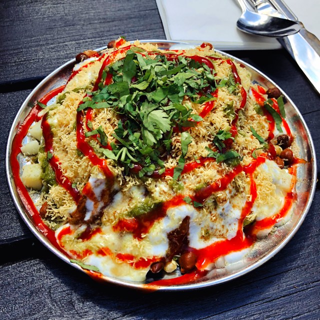 There are so many dishes it’s hard to know where to start, but the Punjabi samosas are huge, tasty and crazily good value and the crispy bhajia (spiced, fried slices of potato, their pungency offset with a sweet carrot chutney) are superb. Paneer is irresistable, either dry and caramelised with chilli or served Manchurian style in a sweeter, stickier sauce. And the samosa chaat, pictured above, is a riot of colour, flavour and texture. Who needs a faddish meat-free burger when you can try a vada pav?