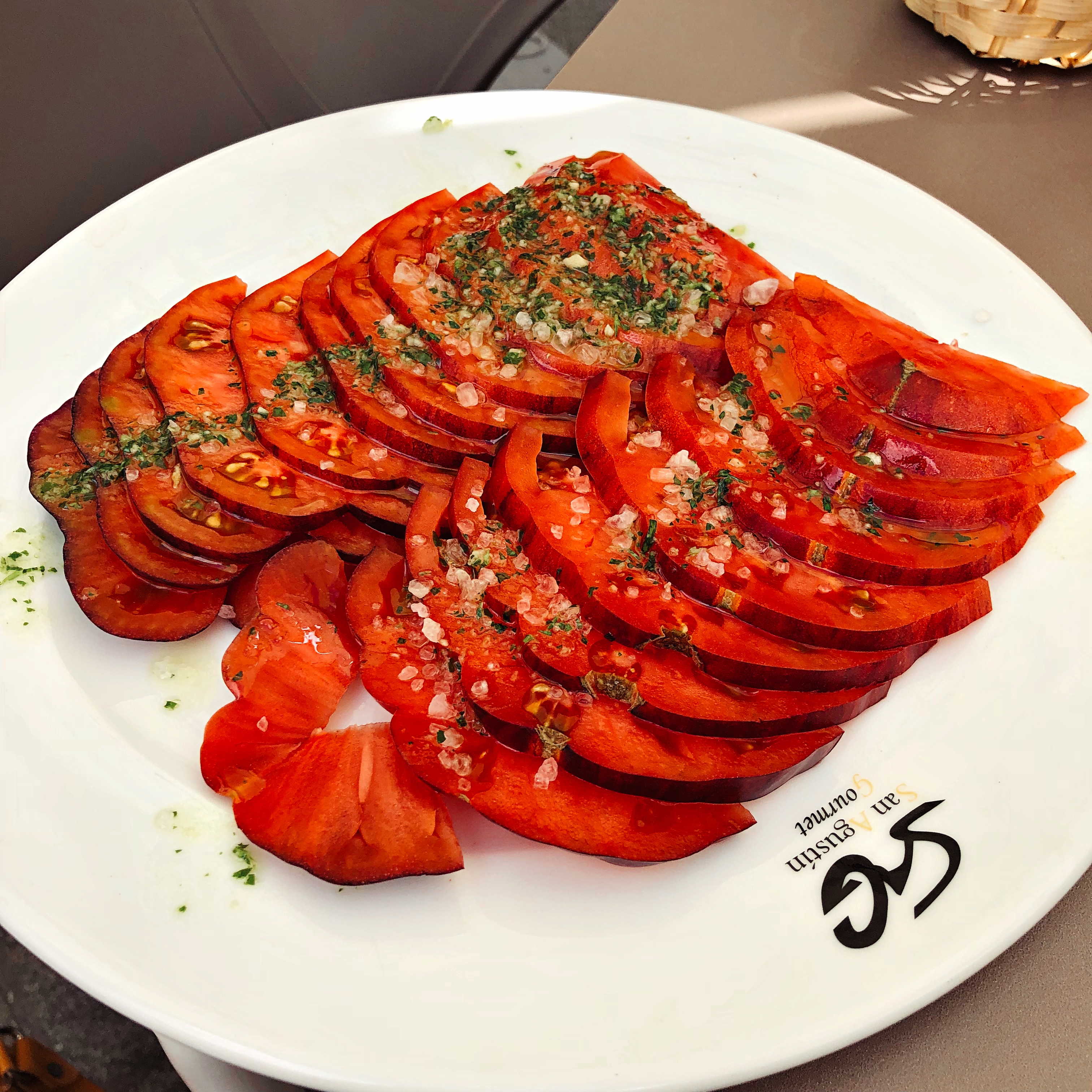 I ended up eating there twice, so much did I enjoy it, and everything I had was near perfect – whether it was swordfish or bacalao straight off the plancha, perfectly cooked and drizzled with oil and herbs or baby squid piping hot and waiting to be dressed with freshly squeezed lemon juice. But the revelation was tomatoes aliñado, huge things cut into slices like steaks, beautifully sweet and dressed with olive oil and big salt crystals, one of the most magical things I ate on my tip. It made the bland polytunnel tomatoes we get in the U.K. feel halfway between a disappointment and a national embarrassment.