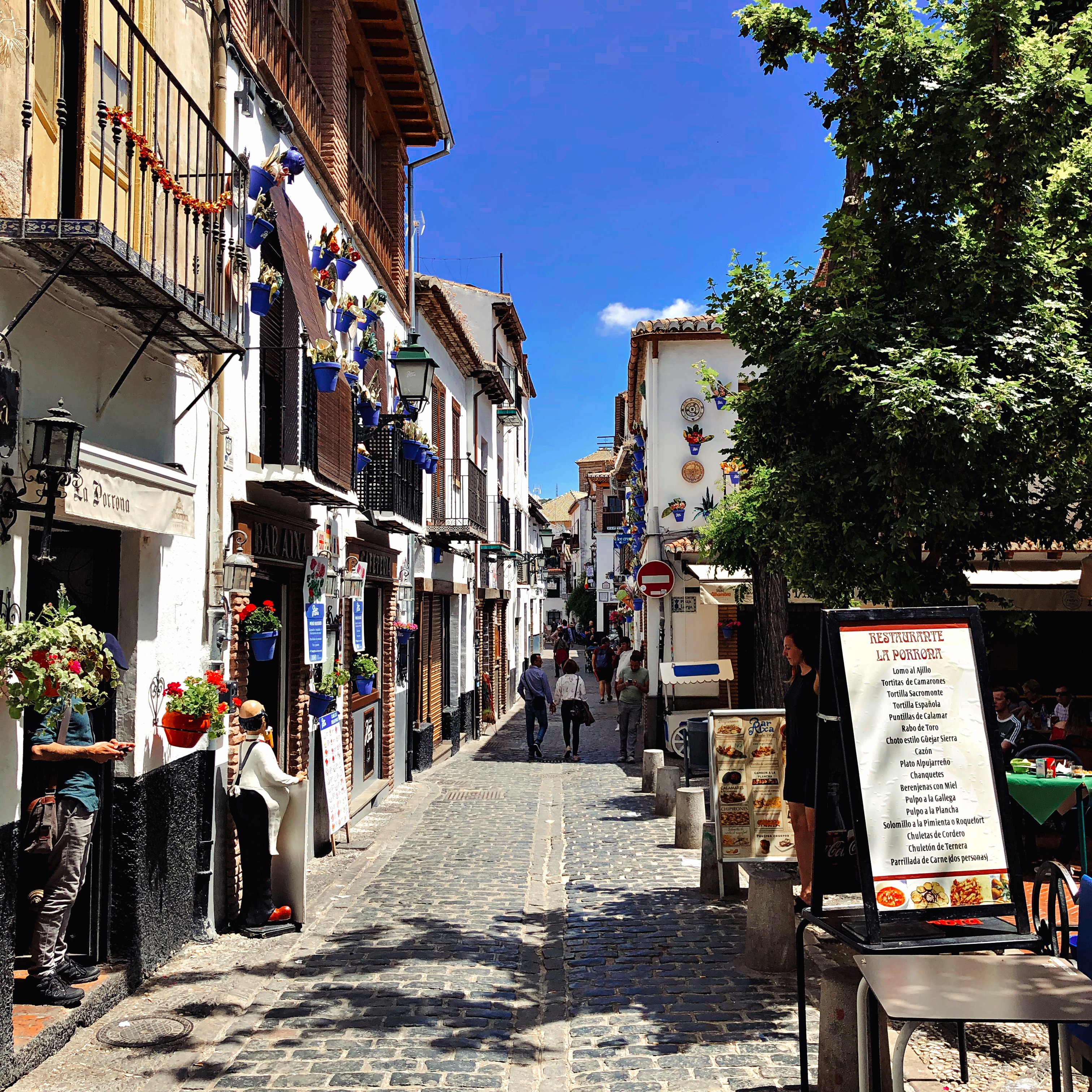 Anyway, I don’t remember much about that visit but I do remember Granada. Bar after bar, beer after beer, and free tapas with every one. Beyond that, my evening was a blur – we wandered through the winding lanes of the Albaicin, the city’s Moorish quarter up on the hill, and ended up in a nightclub in a cave until the small hours of the morning. Even in our mid-twenties we were probably too old for that sort of thing, and as the sun came up we sat outside Cafeteria Lisboa on Plaza Nueva (it’s still there) and had a beer for breakfast for the first and probably only time of my life. What a city! What a place!