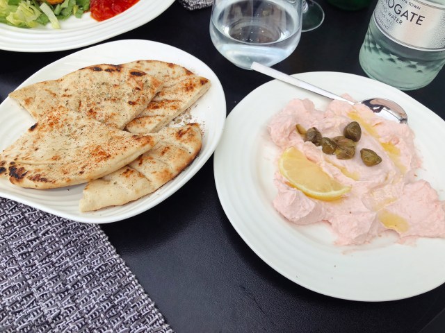 We decided to share some of the starters to begin with – these all vary between about five and eight pounds, although they charge extra for pitta which felt cheeky to me. How else did they expect you to eat houmous or taramasalata, exactly? The taramasalata, incidentally, was one of the best starters we had – brighter pink than I’m led to believe it should be but punchy all the same. I especially liked the addition of some salted capers on top, but I suspect they were more popular with me than with my mother. “It doesn’t taste that fishy” was her feedback – my stepfather and I disagreed, but she had taken against the dish and that was that.