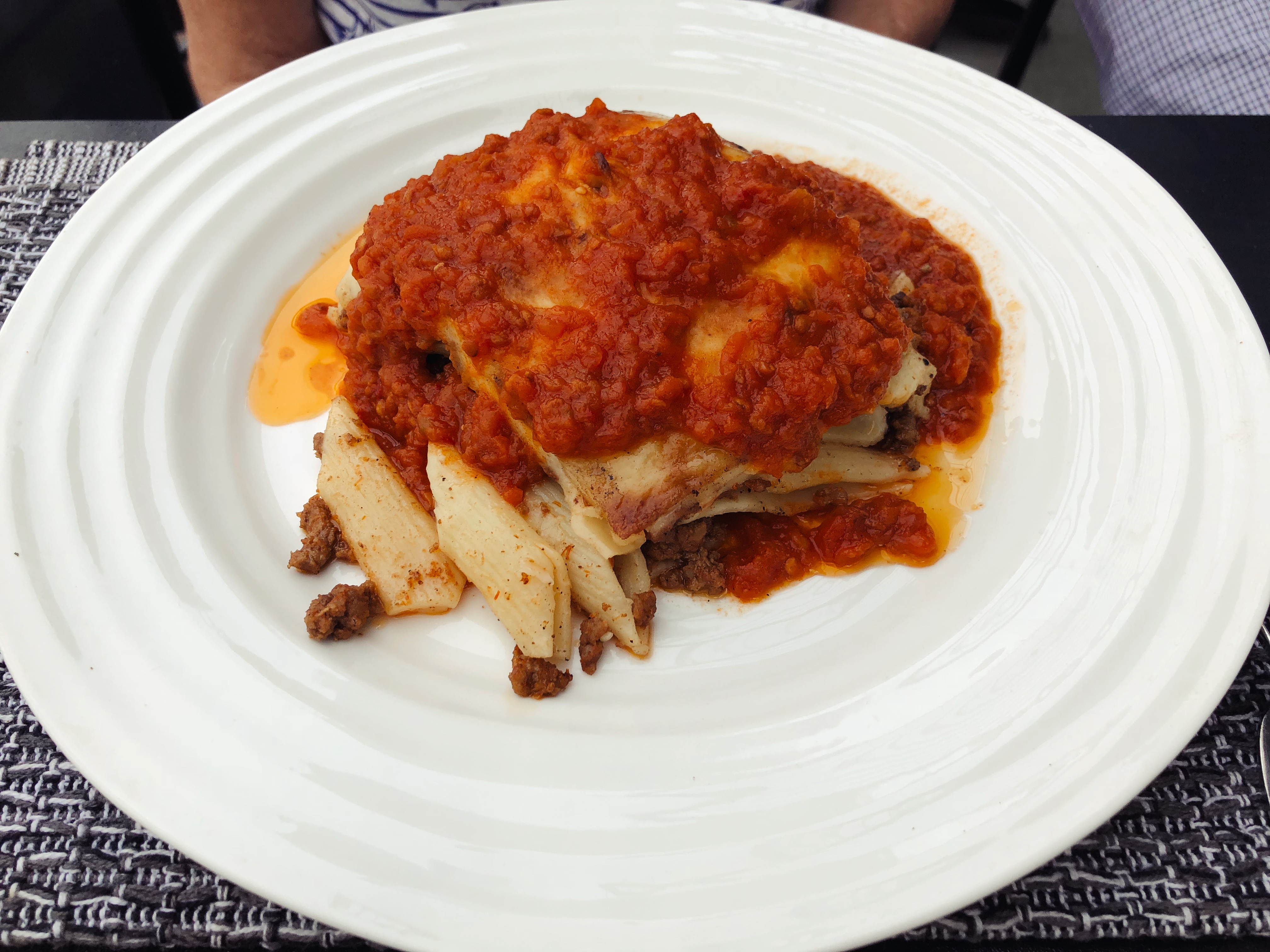 Even if the glass had been half full up to that point, it pretty much emptied when my mum started eating her pastichio, a sort of Greek lasagne which serves as an alternative to moussaka.