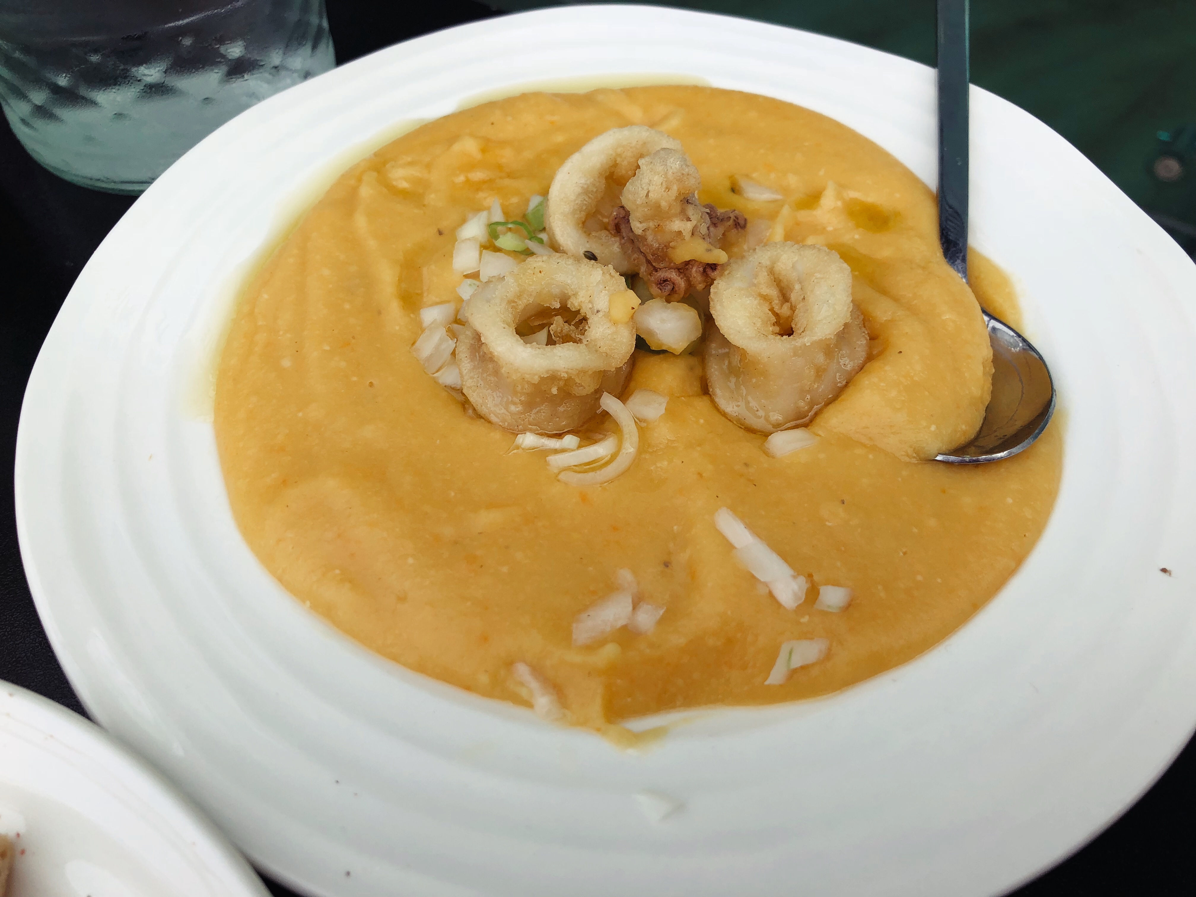 “Well, it’s not unpleasant” she added, the implication clearly being that not unpleasant was not good enough. I could see what she meant, but I was more disappointed that paying two pounds extra got your fava bean purée topped with precisely four tiny bits of squid. Maybe I’ve inherited her critical faculties.