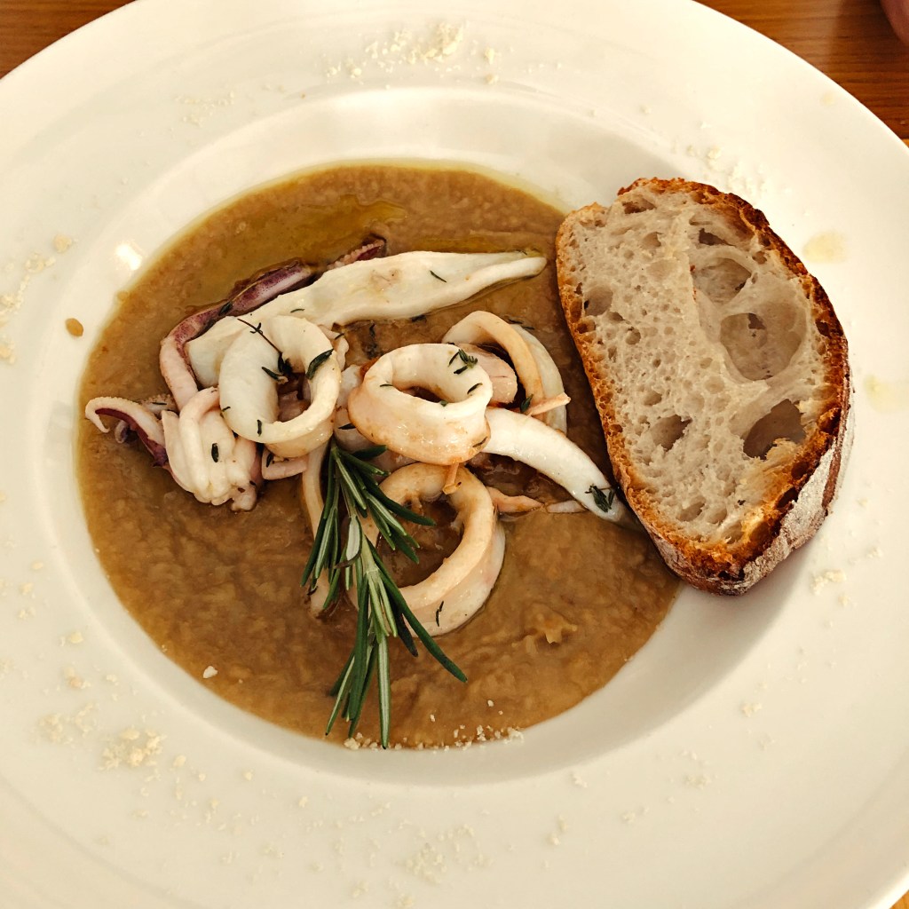 I came for the pizza and it truly was one of the finest I’ve had, with a perfect crust and a rich, almost fragrant tomato sauce. But actually, all the other dishes were even better – especially shedloads of tender squid served on a deep, earthy chickpea purée. I still occasionally go on – to anybody who will listen – about the oven roasted potatoes, salty and fatty with a slightly medicinal tinge of rosemary: one of the cheapest things I ate in Bologna and easily one of the most memorable.