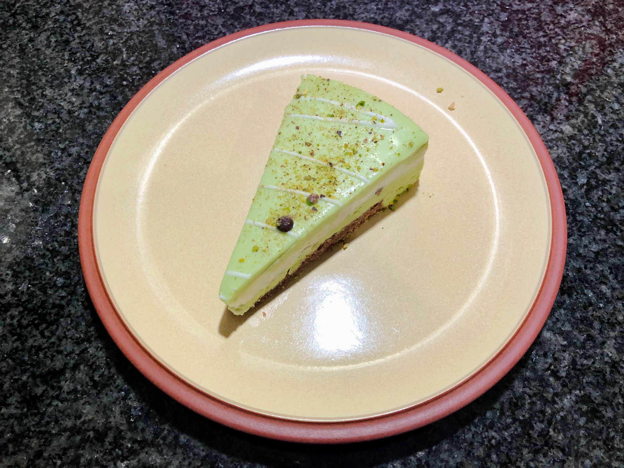 Mansoor had also told me that I needed La’De Kitchen’s pistachio cheesecake in my life, so after an appropriate period of rest and digestion had taken place I fished it out of the fridge. Desserts haven’t exactly been a feature of my takeaway reviews so far, so I was very happy indeed to get to try one. It was good but not great – the centre was very cold and much harder than the rest, in a way that suggested this dessert had previously been frozen. I might have been spoiled by the lovely cheesecake they sell at Geo Cafe, by the very talented Anabel of Reading Loves Cheesecake, but this was a little too sweet and a bit too insubstantial for me.
