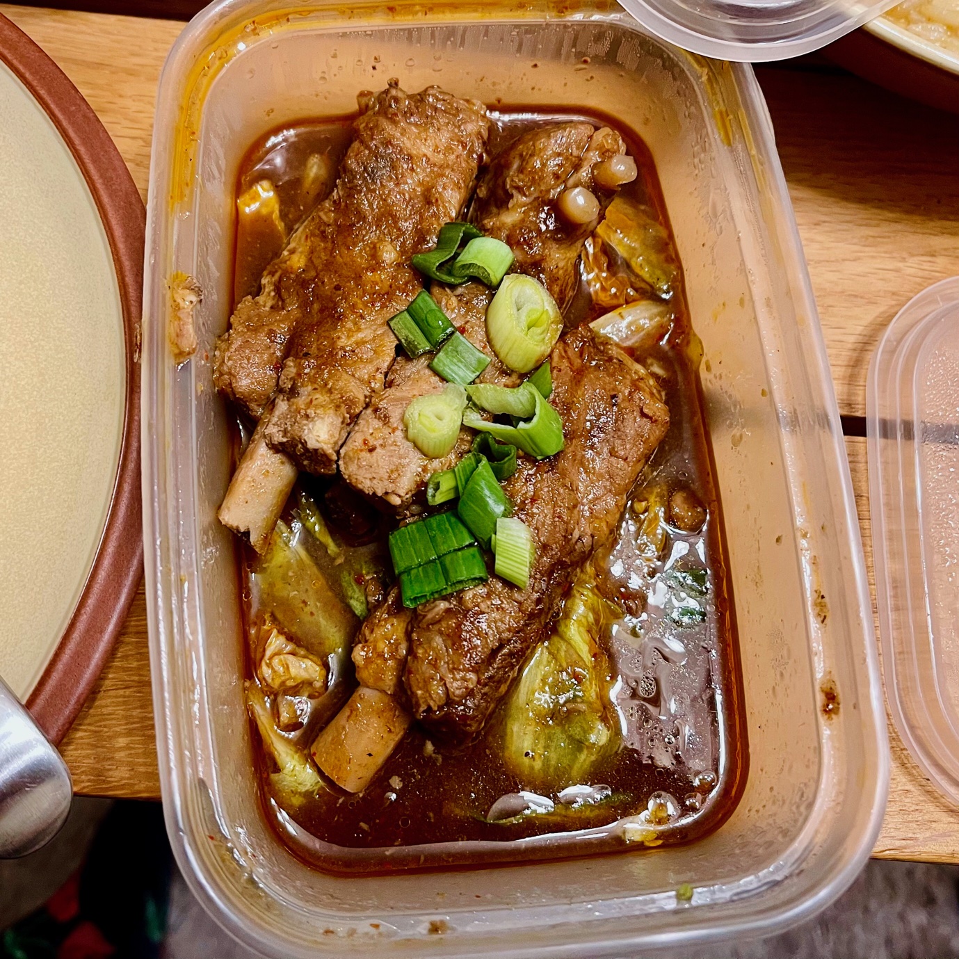 It had stuck in my memory as an indulgent, cossetting dish but actually, if anything, it was more interesting than I remembered. So of course every forkful of fragrant coconut rice soaked in that silky sauce was gorgeous, but the whole thing was shot through with star anise, giving it an extra dimension that stopped it being cloying. I thought it could do with ever so slightly more chilli heat, but it was so luxurious (and faintly soporific) that I couldn’t complain. I’d been concerned that the colossal hunks of beef bobbing in the sauce might be too tough, but every single one passed the two forks test with flying colours. And I’d forgotten how much I love coconut rice, too, right up until the moment when I took the lid off the container and that wonderful aroma rapidly came into focus.