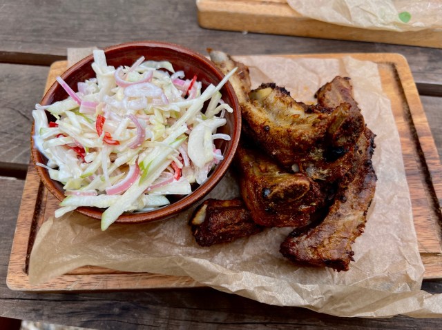 On a previous visit in 2019 I had a huge, smoked, blackened pork chop, fresh off the grill, which ducked under the velvet rope and went straight into my gastronomic hall of fame without passing GO or collecting £200. This time round it was all about the lamb neck, tender and moreish, scattered with salt and served with a puddle of aioli and a properly zingy salsa verde. We made the mistake of ordering pizza from another vendor first and then picked up the lamb dish from RØK just before their kitchen closed, but when I return – and I will return – I’m ordering everything on their menu, even if it leads to a Mr Creosote situation.
