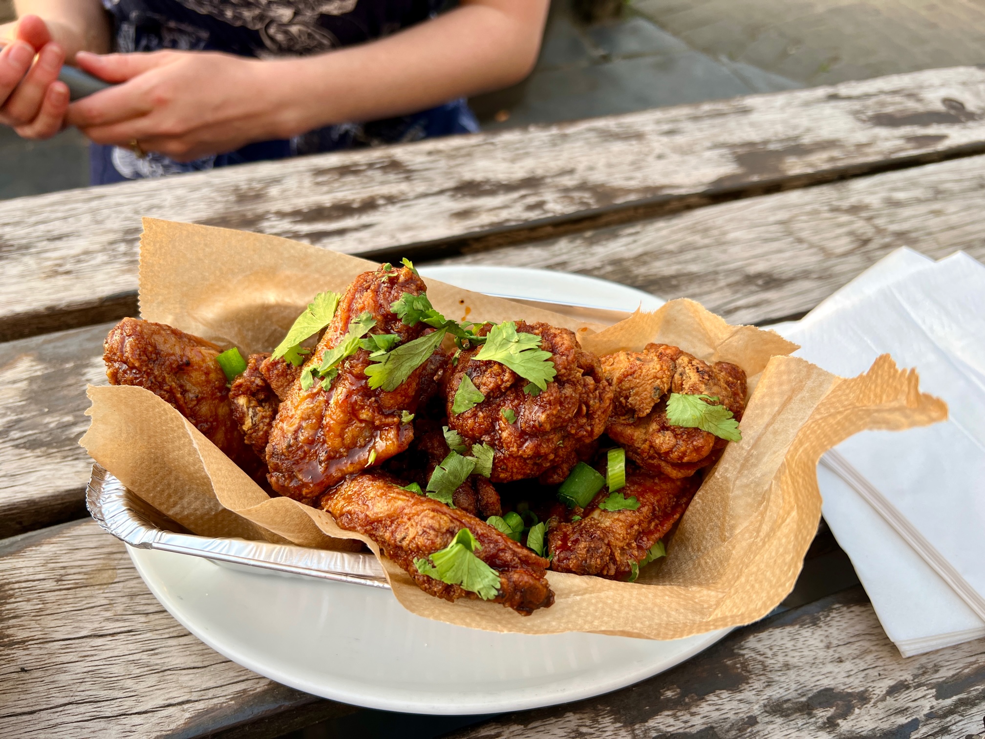 Blue Collar has picked a mixture of the star players from its weekday markets to run permanent kitchens at the site, which means you can choose from pizza at Sarv’s Slice, bao buns from YouBao or the near-legendary fried chicken from Swindon’s Gurt Wings. The Taco Tree, an offshoot from Vegivores, completes the quartet. In truth when I’ve attended I’ve found it difficult to stay away from Gurt Wings’ incredible JFC (karaage-style fried chicken) with Lost In Translation, their gochujang and sriracha combo sauce. But Sarv’s Slice is also well worth trying – their carbonara pizza, in particular, knocked my socks off.