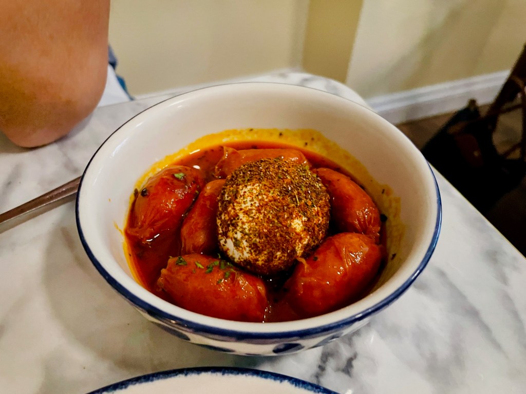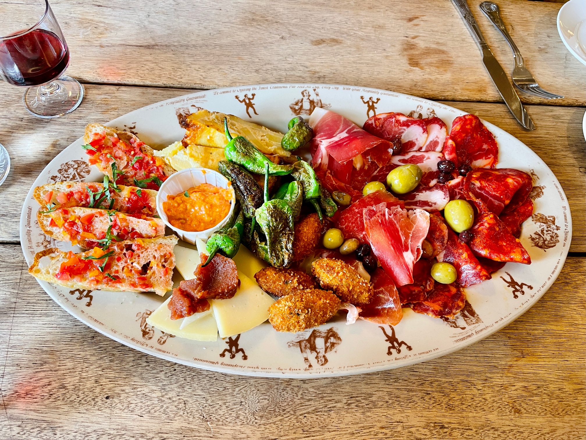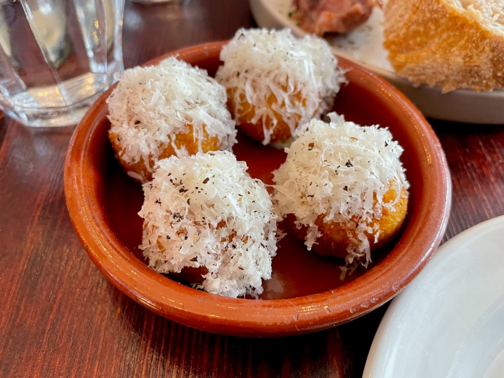 We were on safer ground with cured meats, although again these would have been even better closer to room temperature. The Jamon was coarse and salty, with a beautiful dry texture and the lomo, which looked more like coppa, was equally delicious. And there seemed to be two different kinds of chorizo – both were gorgeous but one had that glorious alchemy of meat, fat and pimenton down pat. The plate was strewn with olives, although I did find myself wishing for something like some caperberries to add the sharpness that was missing.