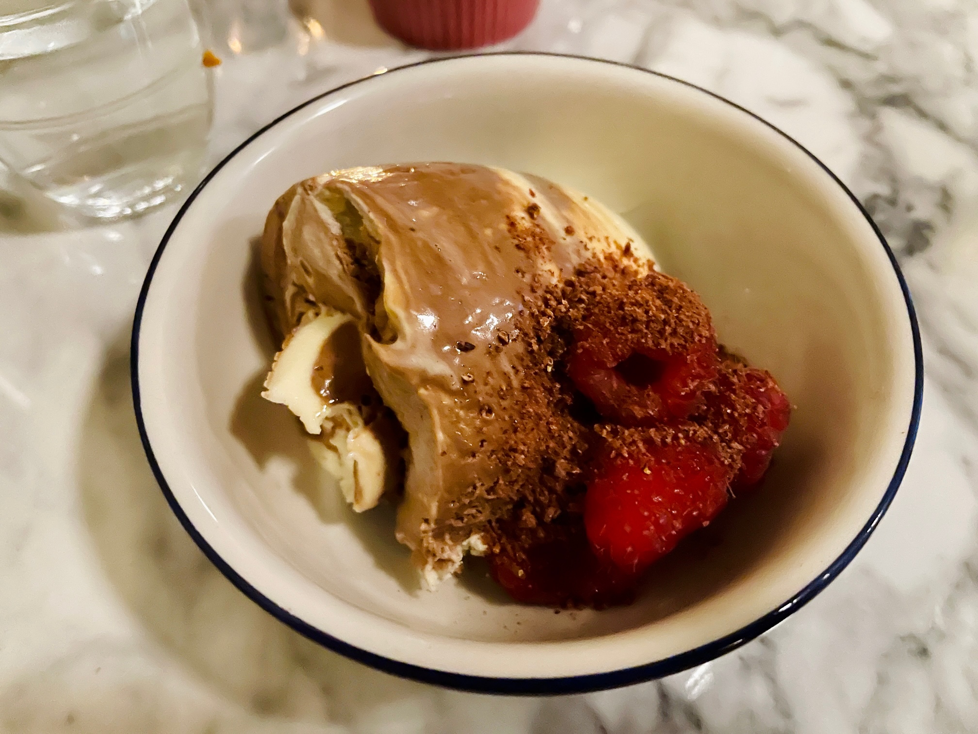 You would think, given everything I’ve said, that we passed on dessert. But you’d be misjudging how thorough (or how gluttonous) I am. My ice cream was excellent and again – bit of a theme here – hugely generous, with an enormo-scoop of a deep, bitter chocolate gelato and a pistachio ice cream which felt to me, both in terms of colour and flavour, to have more of a marzipan note to it. I love the stuff, so I was happy if I’d been missold.