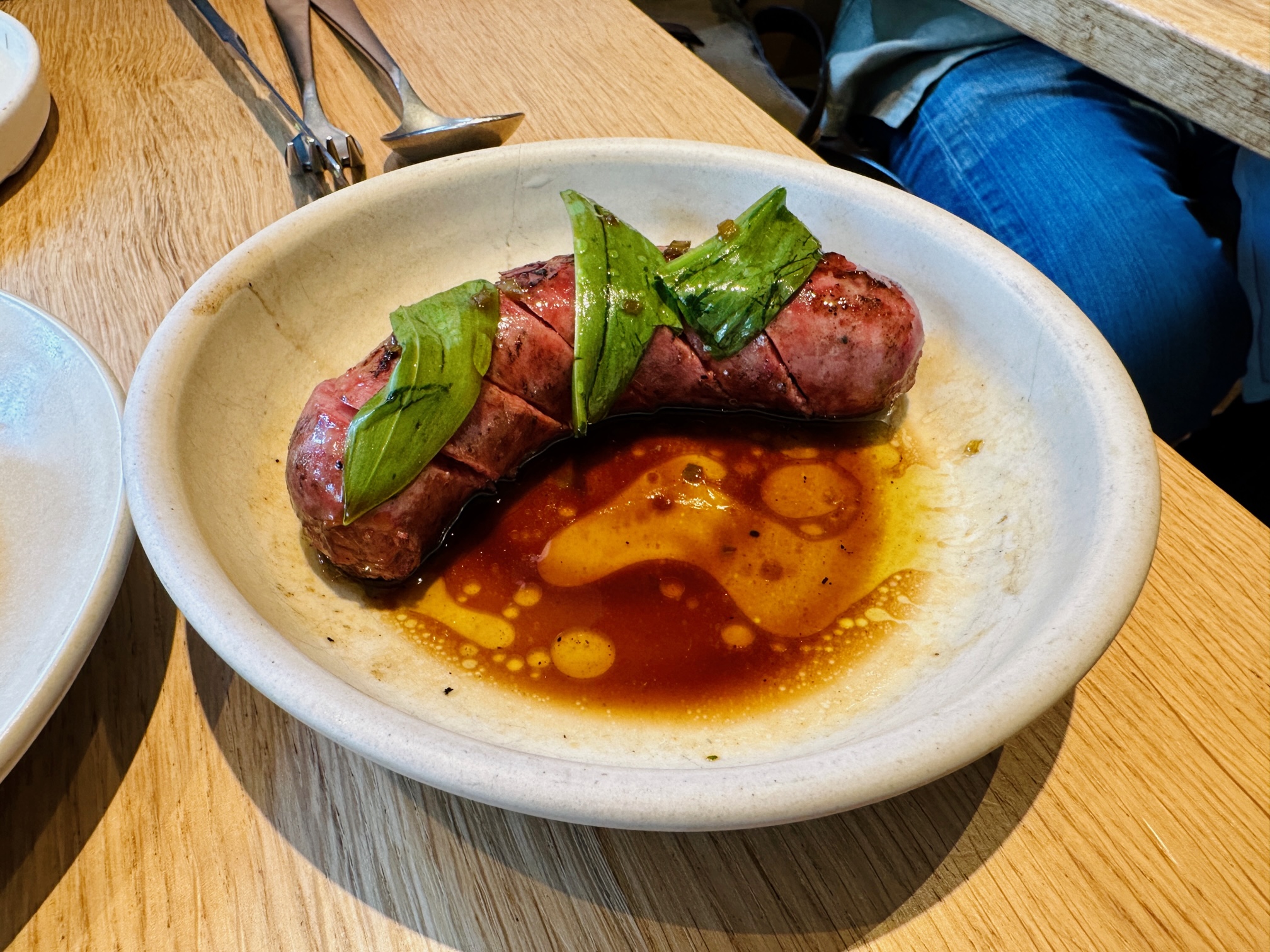 We started with Knead’s charcuterie sharing board, which clocks in at just under fifteen pounds, and it was easily the least impressive thing I ate all evening. This could and should have been an opportunity to showcase how well Knead buys, but it fell flat. The prosciutto had the sheen of something freshly decanted from plastic, the mortadella was – well, still something I’d never really choose to order. The salami was decent but unexceptional. Cobble Lane does lovely cured meats, but I’d be surprised if any of this came from them.