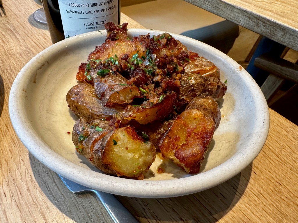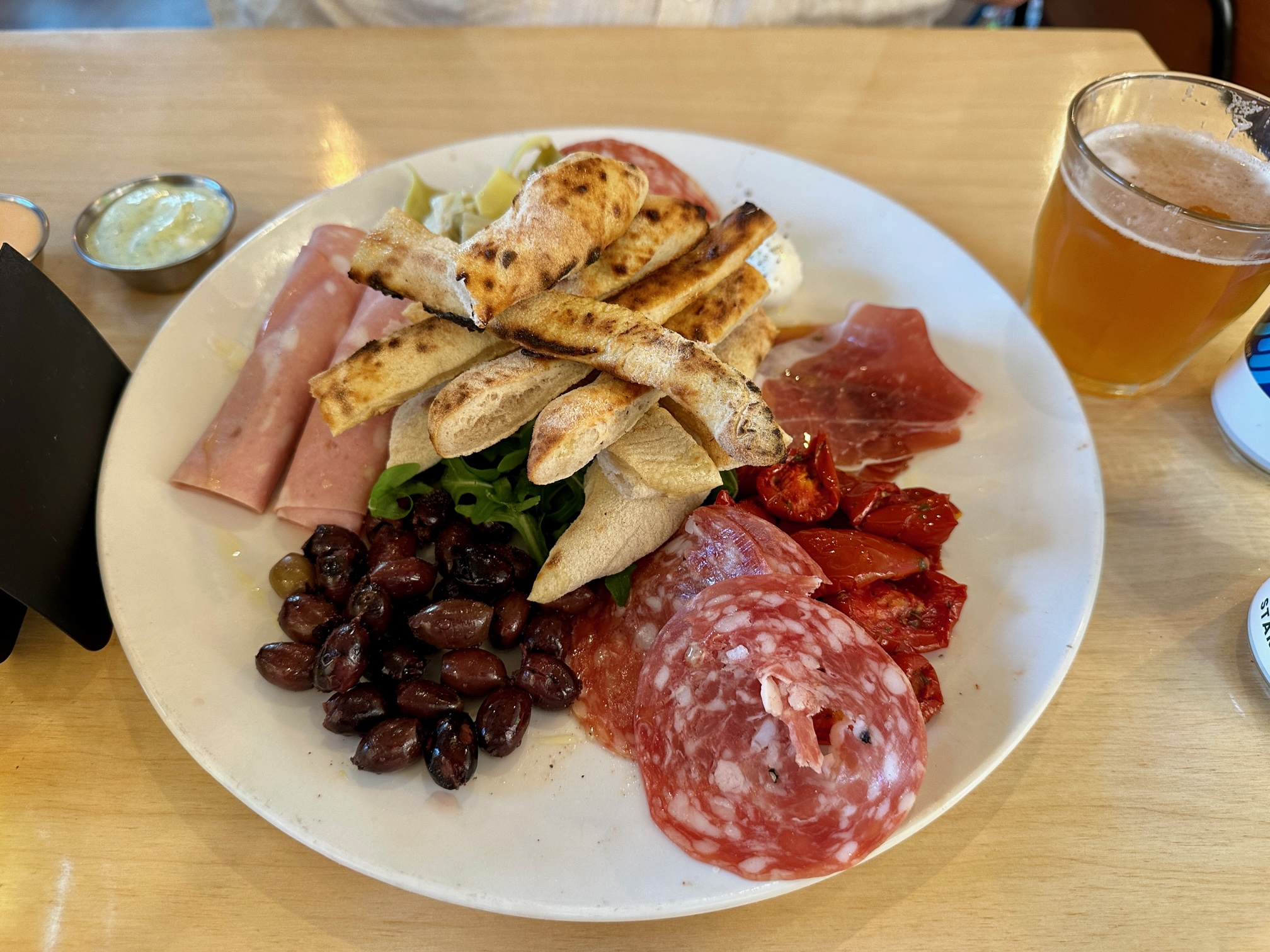 So with the charcuterie not exactly the star of the show, that left the rest. And the rest felt a little like padding. Artichoke hearts tasted thin and nothingy and had, I imagine, been fished out of a jar. Sundried tomatoes, bocconcini and olives were all perfectly unexceptionable, but you could get this in a plastic tub from M&S. And the “no waste focaccia” made from leftover dough was just sticks of pizza dough and not focaccia at all. Presentation just looked like everything had been shoved on a plate, an attempt to say “look how much you’re getting”.