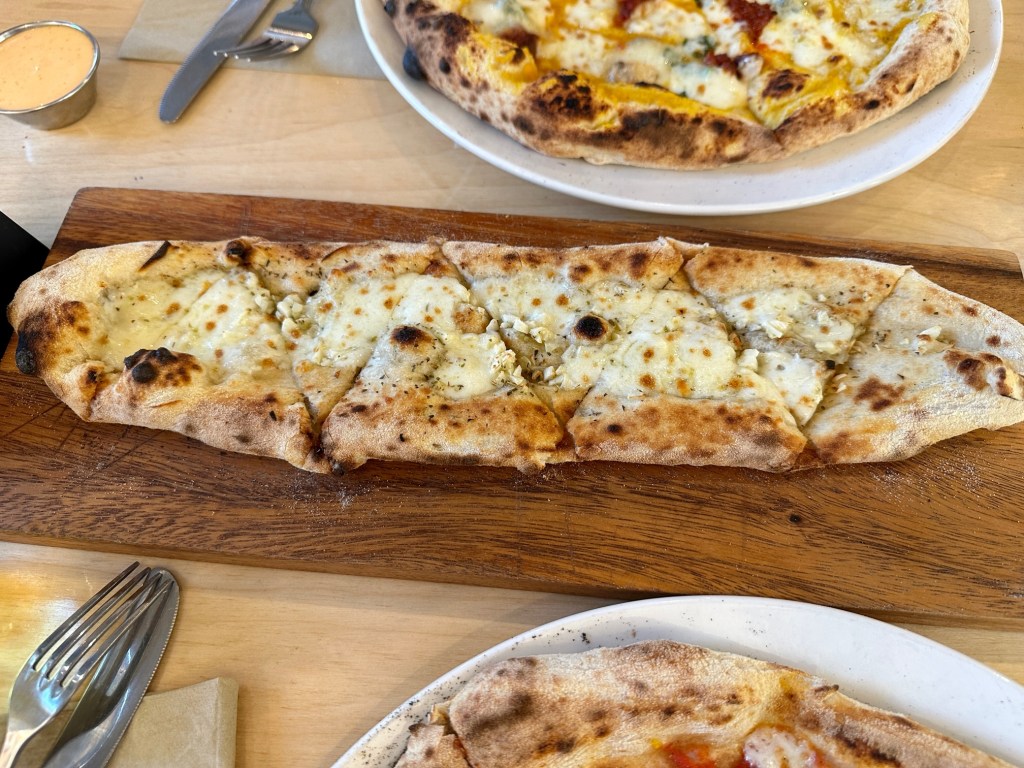 Zoë’s choice, which she out and out adored, was a white pizza. Now, I have friends who think these are against God and against nature, but I personally think there’s a time and a place for them. Based on Zoë’s reaction to this one, the place might be Knead and the time might be the next time I go to Knead.