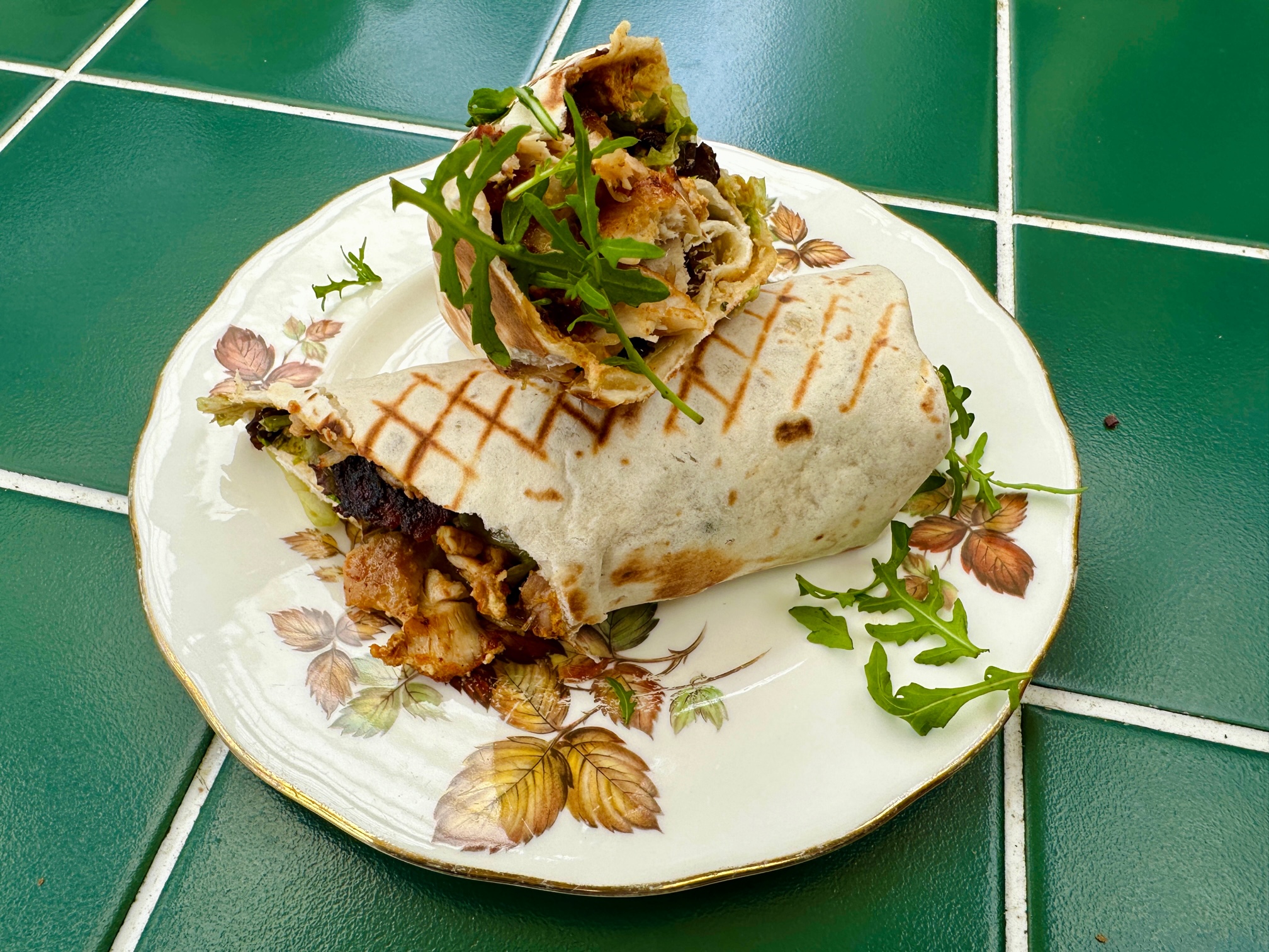 Forget “Sam’s Wraps”, if you’re in the centre of Reading at lunchtime this is the wrap you want, from Sam Adaci’s big green food truck just outside the Boots on Broad Street. Everything he does is good – including his magnificent falafel made and fried to order – but my heart belongs to his Challoumi wrap. Loads and loads of superbly spiced chicken, cooked and finished on the hot plate, just enough heat and charred edges, is laden into a sizeable flatbread with salad, pickles, garlic sauce, chilli sauce and halloumi.