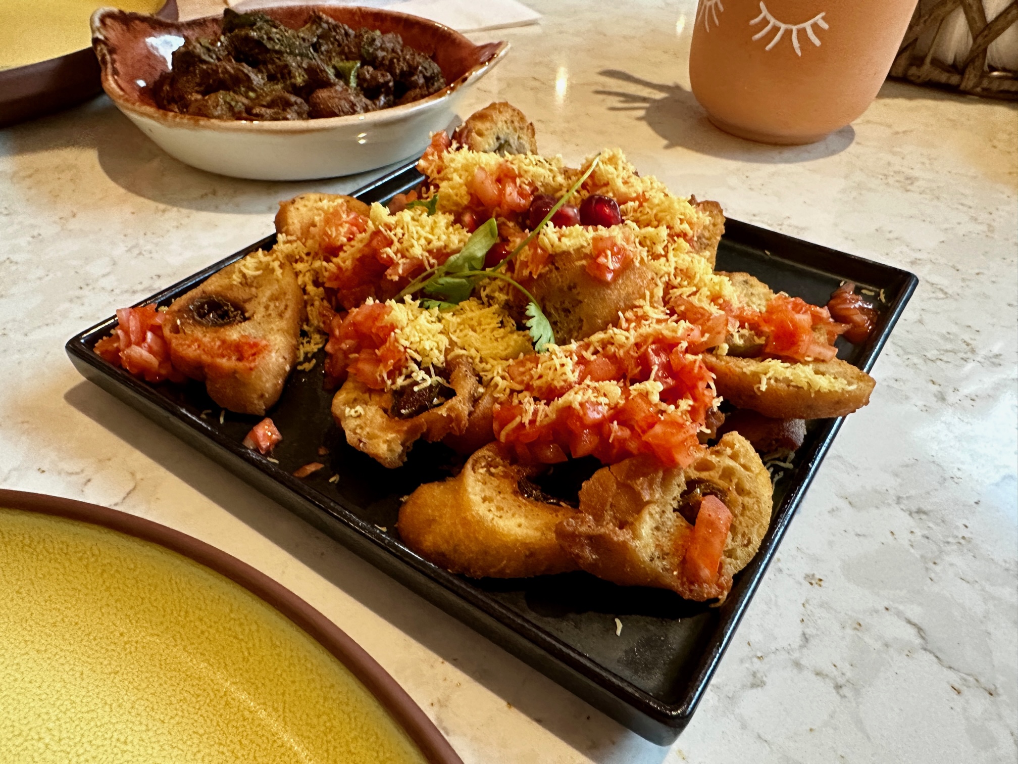 So yes, this dish, the mini raj kachori from Clay’s small plates menu, is phenomenal. And yes, it’s a superior reimagining of the kind of dishes you can get at Bhel Puri House, or Shree Krishna Vada Pav. It’s a crisp pastry shell, like a hollow bubbled crisp, crammed with a spicy mixture of potato and pulses, cool with mint, vibrant with heat, drizzled with tamarind and yoghurt and sev. But where Bhel Puri House’s, or SKVP’s equivalent are prosaic but fun, this is a symphonic, epic dish without a gastronomic hair out of place. Everything on Clay’s small plates menu is miraculous in its own way, but this one’s my favourite.