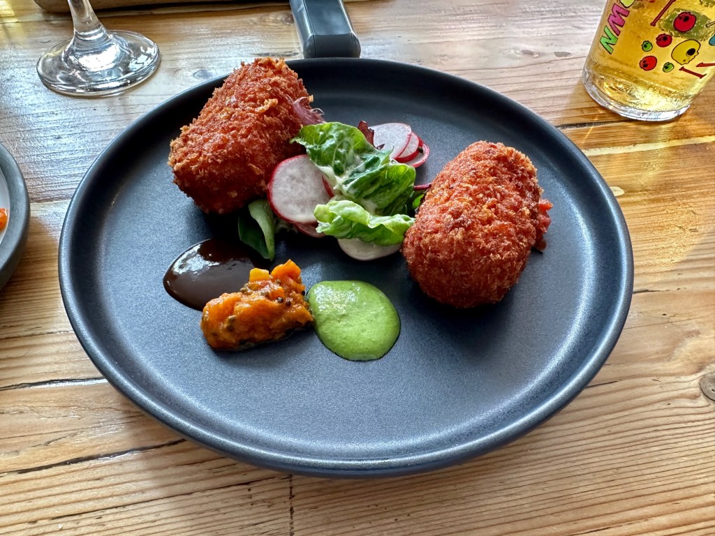It’s a beautiful, tasteful dining room and a menu full of temptations. In the evenings you can get a full tasting menu but I went for lunch in 2023 and everything I had was beautiful. I loved an appetiser of patatas bravas spiked and given a new lease of life with a hefty kick of kimchee and was in raptures about a phenomenal dish of nutty green peas in a rich, savoury broth with prawn foam, pickled prawns and fried prawn heads (not the kind of thing I’d normally eat, but enough to convert any doubter).