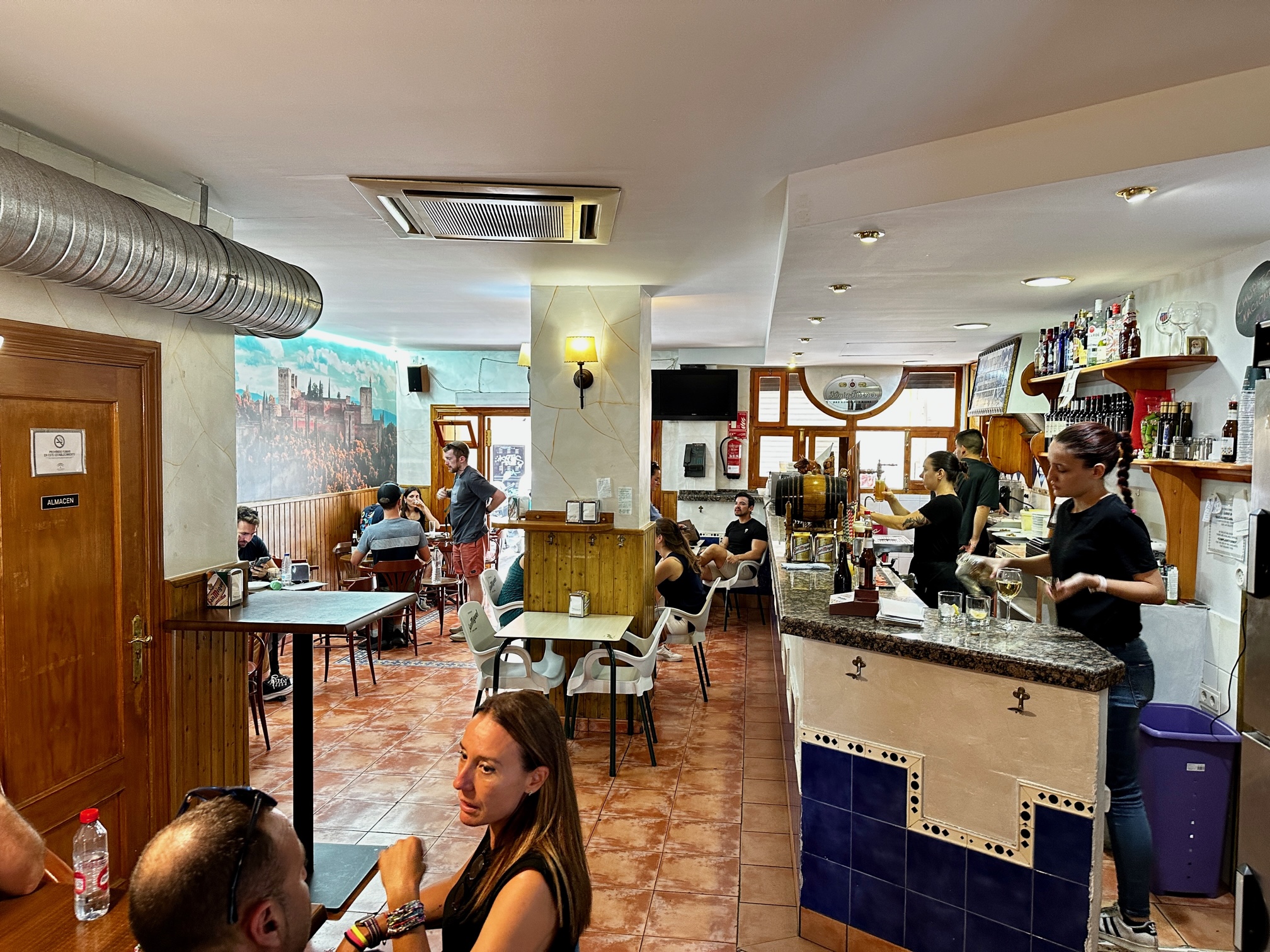 This place also falls into the category of “a quick drink before lunch” but it also happens to be in one of the prettiest squares in the city. Placeta de San Miguel Bajo is up in the Albaicin, just along from the Mirador de San Nicolas, the place to look out on the Alhambra. It is ringed by bars and restaurants on one side, with a beautiful, humble church at one end with a tall whitewashed tower. Take a seat on a terrace, drink your beer and watch those little red buses trundle past from time to time – it really is a fantastic spot.