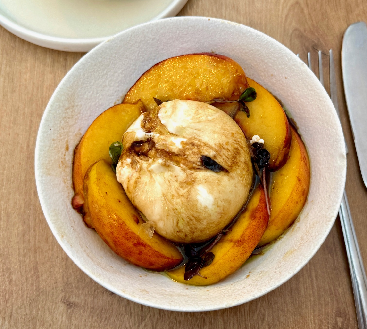 Although it was October when we visited, the weather was in the low twenties and the other two small plates had a feeling of warmer climes about them. Zoë had chosen burrata with peach and basil, the whole thing Ronsealed with a whack of balsamic dressing. The last time I tried a dish like this was in a market in Bordeaux, at the height of summer. This, I think, was better: the peaches just magnificent, the interplay of sweetness, sharpness and mollifying creaminess bang on. Burrata has reached the point now where newspapers have started sneering about it, which I’m sure makes them look dead clever, but done well it’s still a beauty. Again, I’m not sure I’d have wanted to try sharing this, but I was lucky to get a forkful.