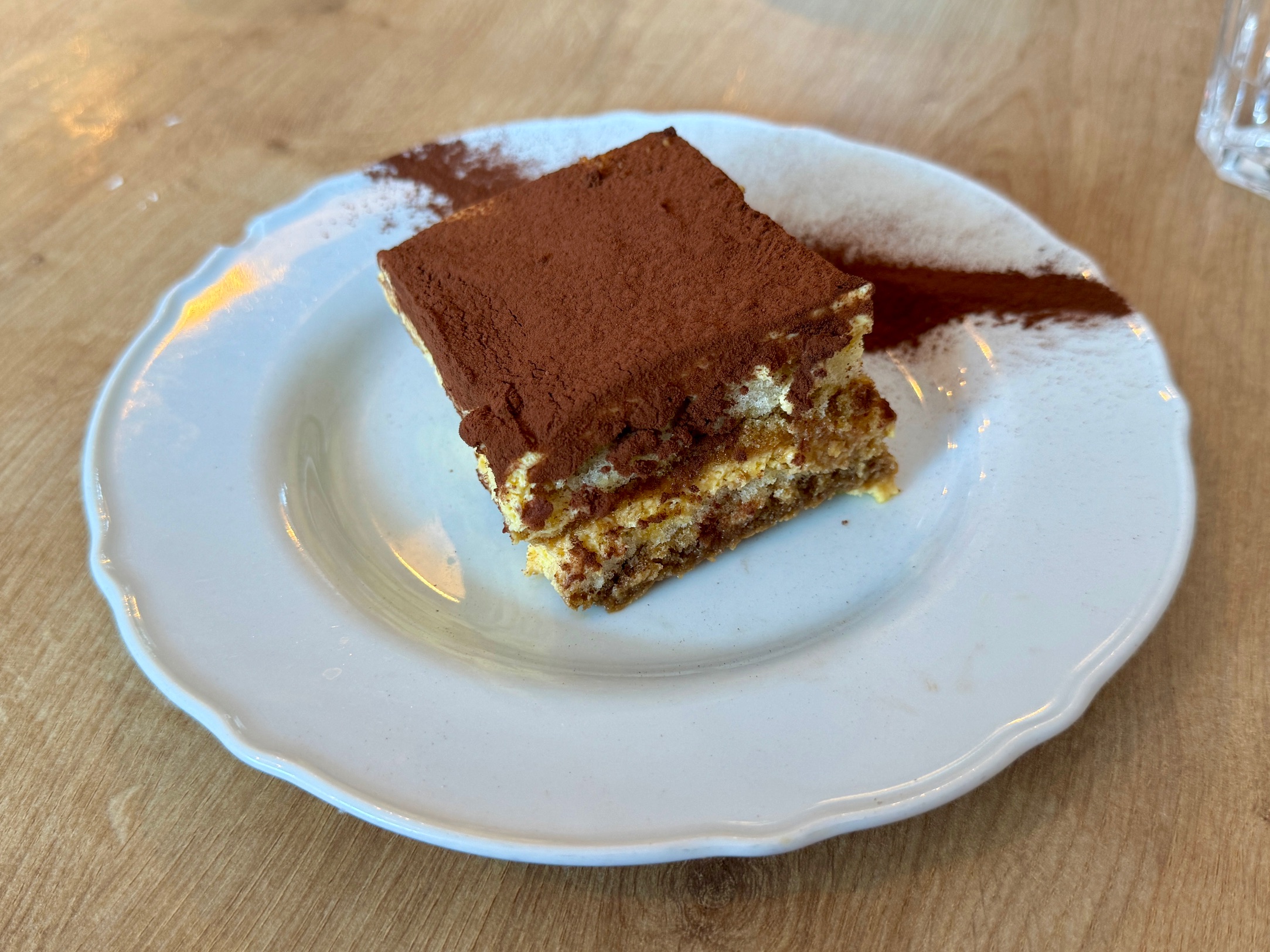 They sort of did but again, it was problematic. Zoë’s tiramisu looked the part but she had a spoonful and said “I think they’re brought us the standard one. Can you taste any hazelnut in this?”. So I tasted it and no, I couldn’t. I’m not a massive fan of hazelnut, or Frangelico, whereas Zoë adores the stuff, so between us you’d think one of us could pick them out. So we asked the wait staff, and they took it to the kitchen to check and came back and said yes, it definitely was the hazelnut version. Which I have to say made me feel pretty thick, but I tried more and I still thought, being charitable, that it was very light on the hazelnut.