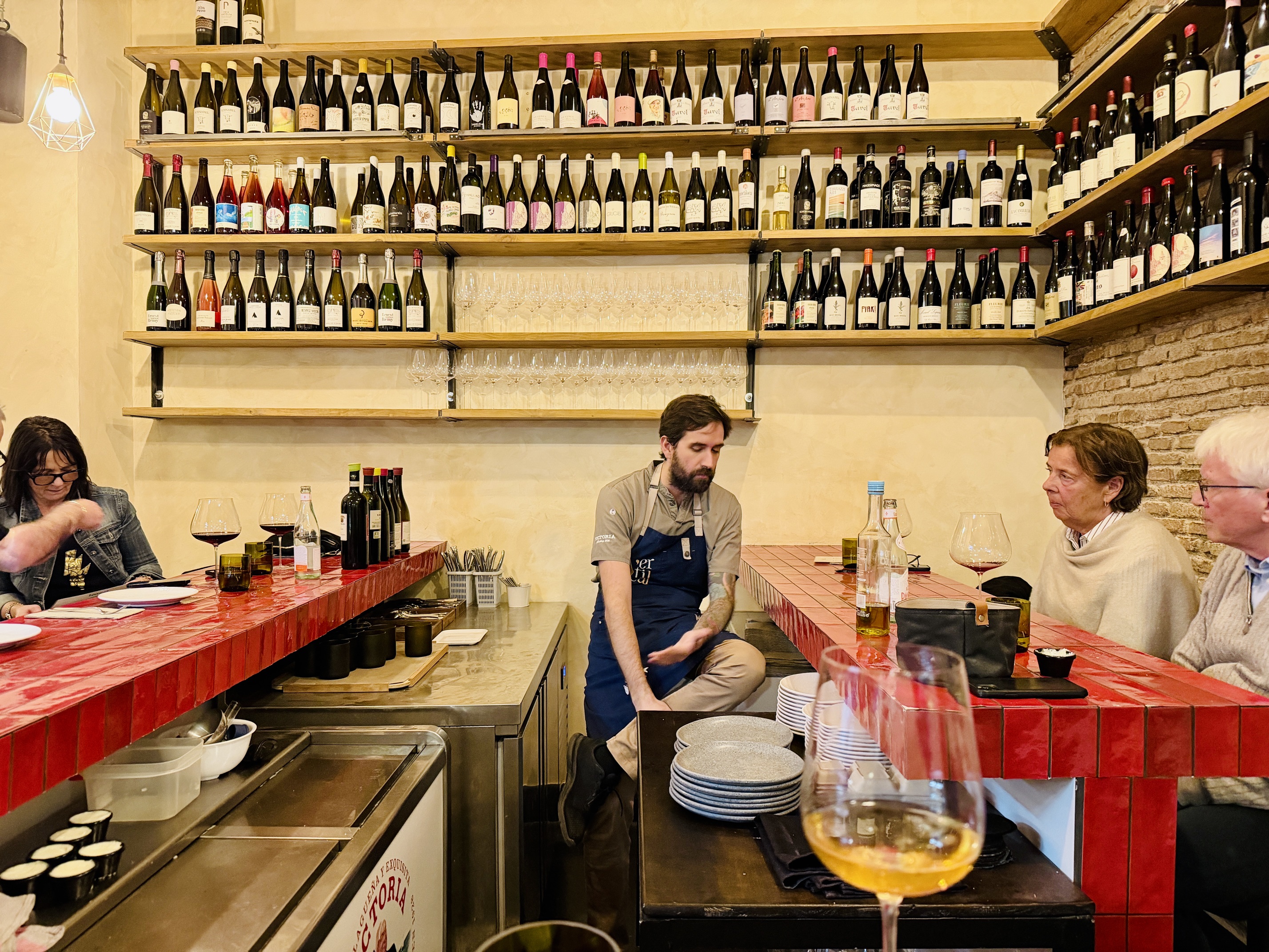 I visited Vertical, a natural wine bar in the old city, back in 2023 and I really liked it. I drank some lovely wine by the glass, I ate beef croquetas, tomato tartare and a pinsa Romana with gorgonzola and guanciale and I bought a couple of bottles of sticky ambrosia to take home, which I packed in my suitcase with particular care.