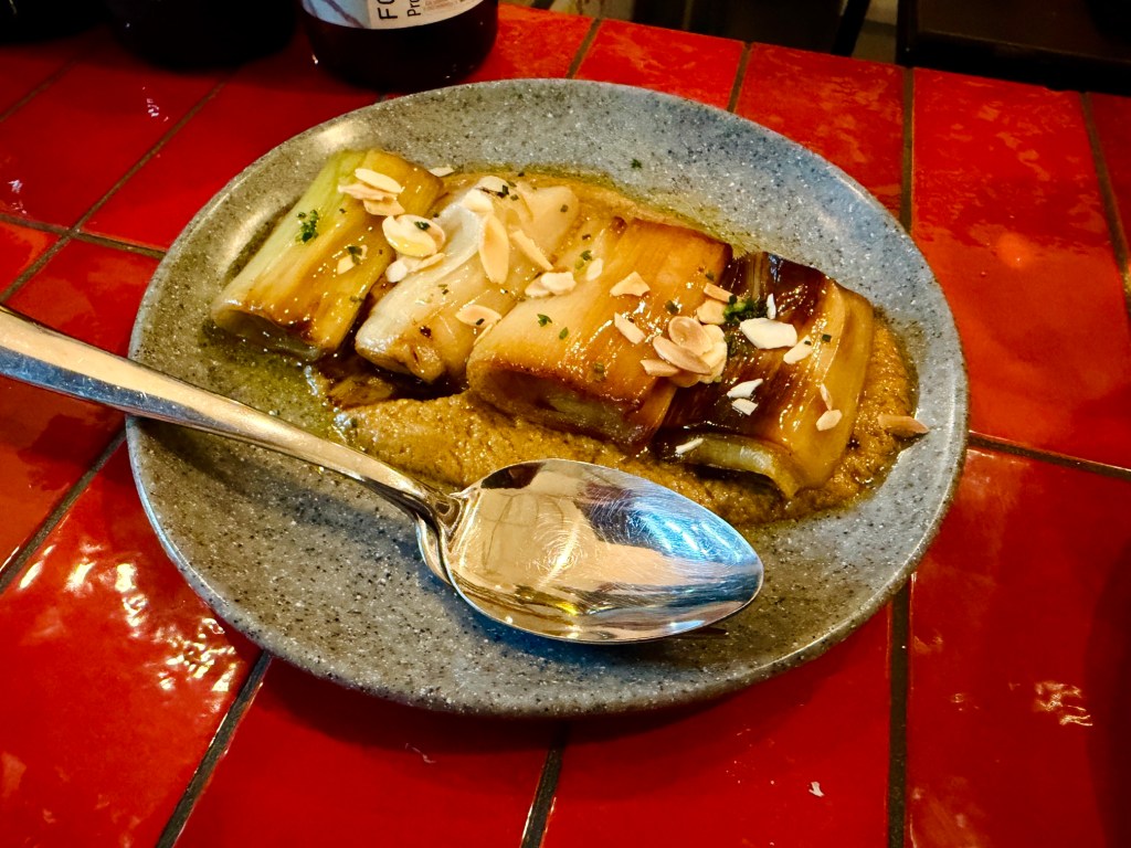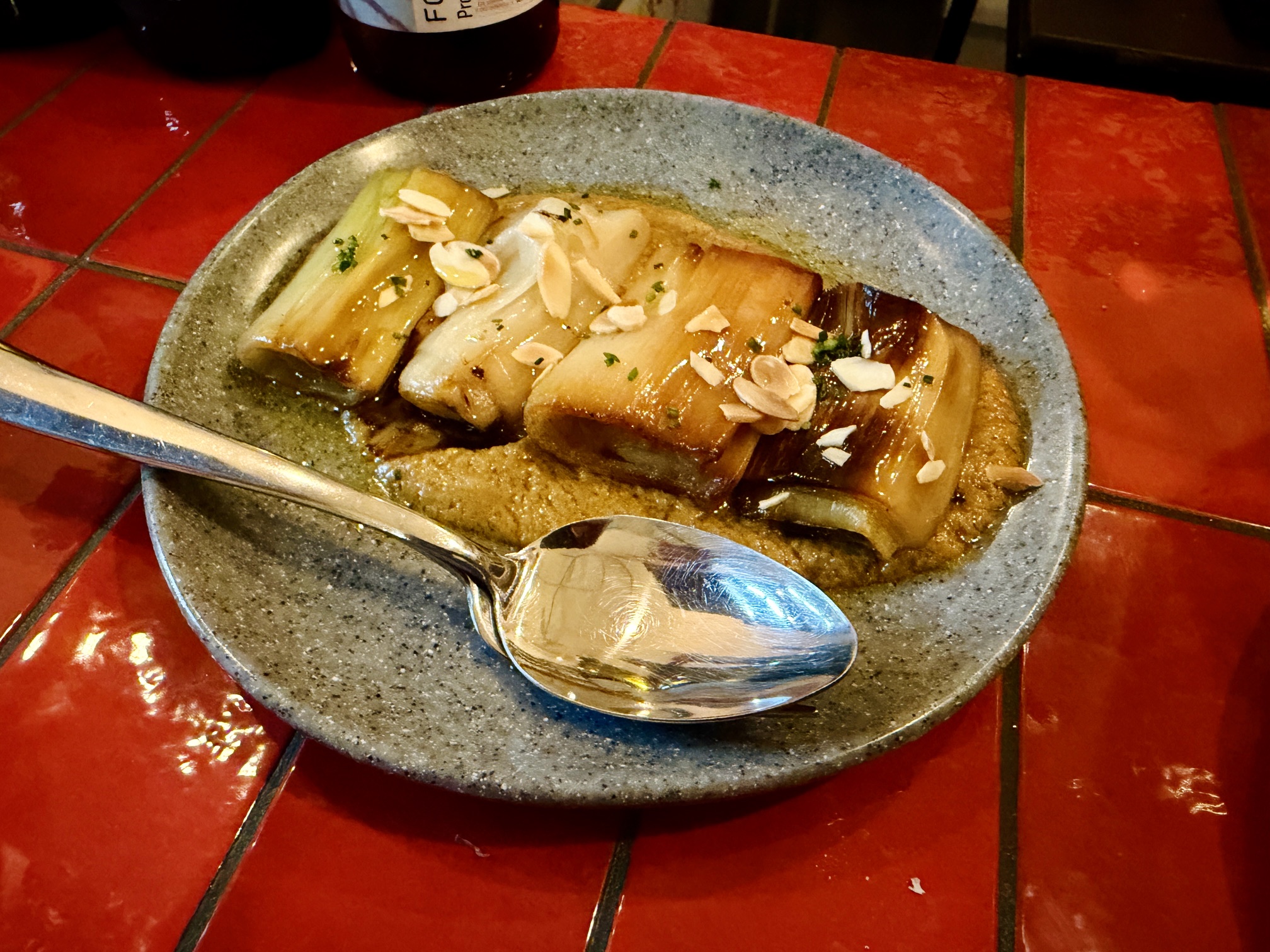We ate superbly, feasting on knockout cured salmon and tuna tartare, shatter-crusted mollejas packed with cheese and sobrasada, the most delectable roasted leeks in a sweet but savoury almond sauce. It is, frustratingly, the Málaga restaurant where I seem to have the least photographs of my food, because I was so enamoured with the experience that, for an evening, I forgot that I would eventually be writing it up.