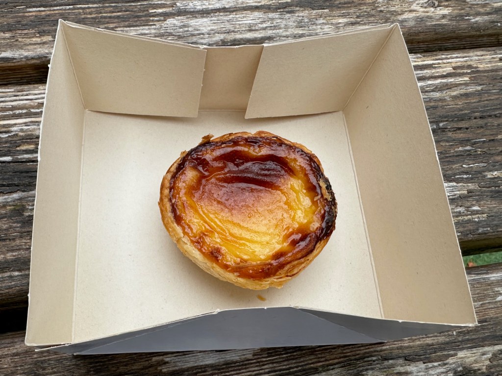 Well, two reasons. First of all, the pastel de nata was one of the best I’ve had in this country and easily Lisbon standard – a beautiful cup of light, flaky pastry filled with wobbly, sweet, still-warm egg custard. Why had we been so stupid as to only buy two?