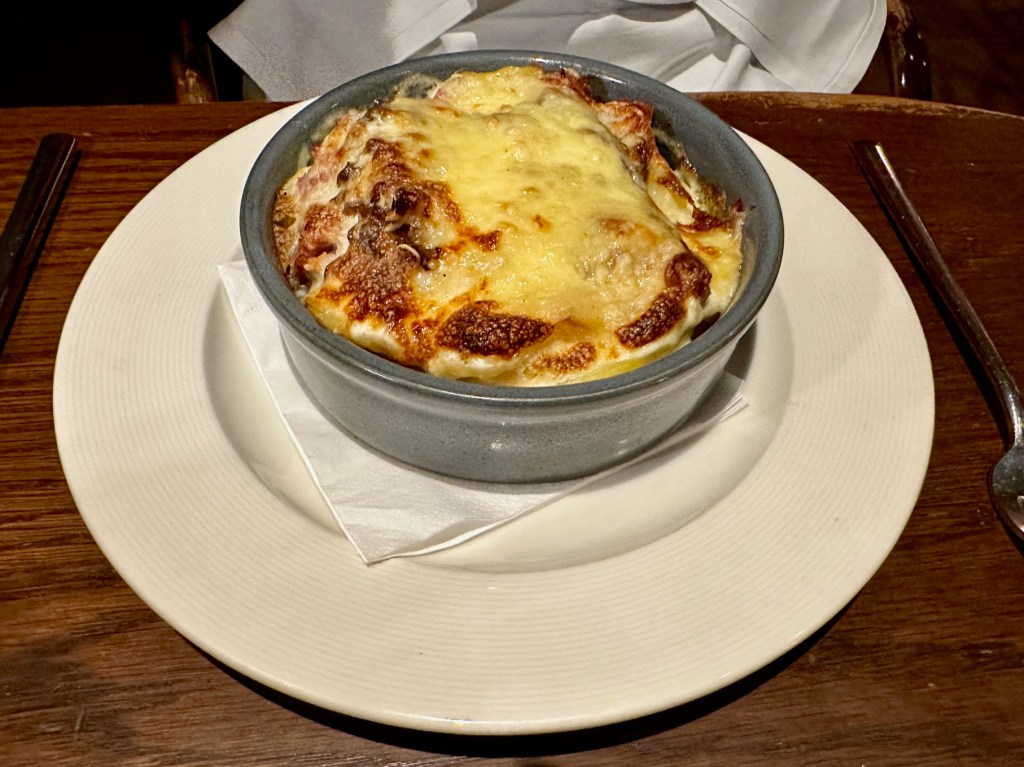 Graeme was set on the tartiflette from the moment he saw it on the menu, and it didn’t disappoint him. Côte’s menu says that its Alpine specials are small plates, but there was nothing small about this. It was an enormous bowl, filled with a brick of potatoes, cheese, onions and bacon and looking at it I was simultaneously sad I hadn’t ordered it and worried about how far I’d have made it through the meal if I had.