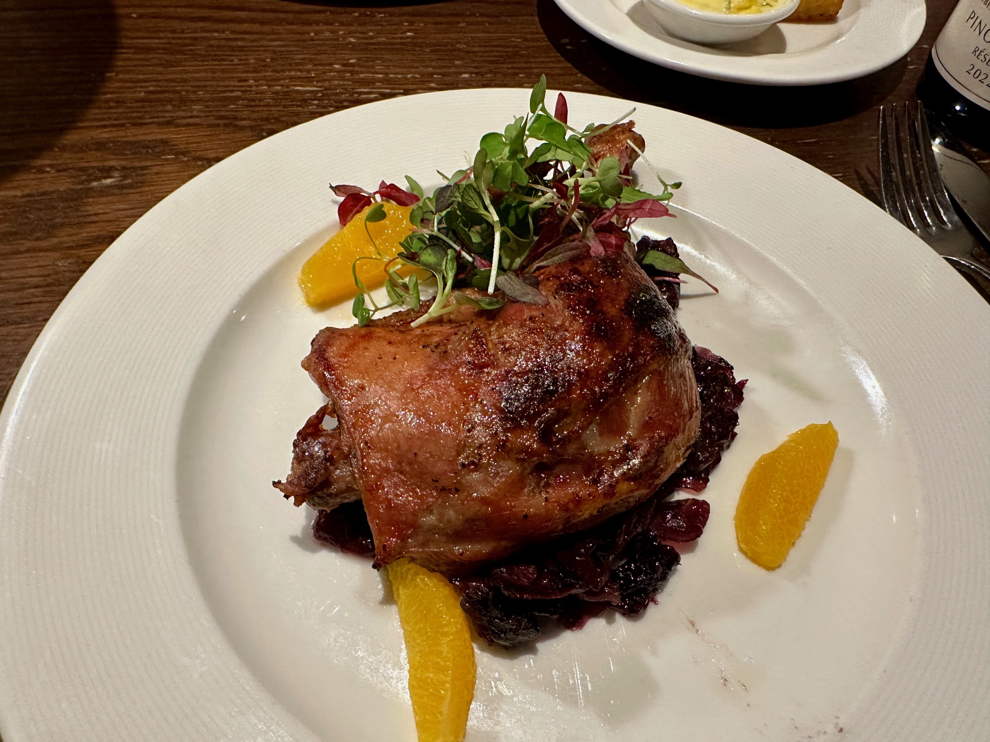But where this fell down was those plain weird orange segments that felt like they’d escaped from a tin. The menu talks about the whole thing being served with a bitter orange sauce, but there wasn’t a drop of sauce to be seen. Three bits of citrus fruit is no substitute for a sauce. It’s the rail replacement bus of sauces. It was irksome, but I still loved the duck.