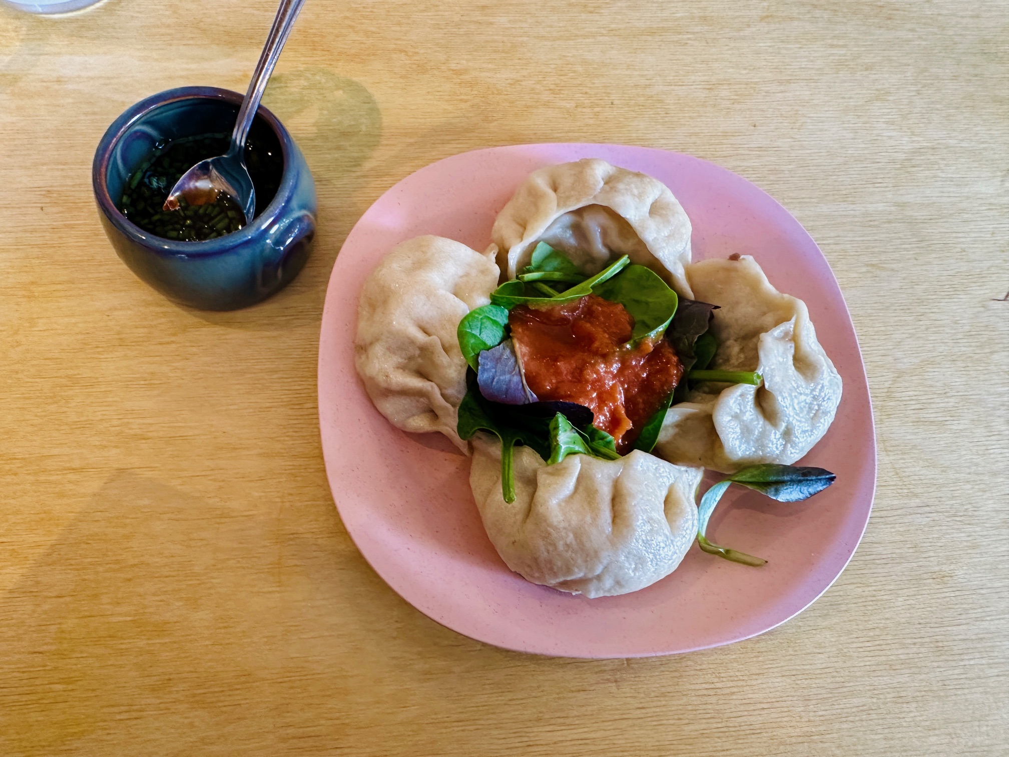 Later on, as I came to the end of my meal, couples and families were braving the outside tables and I saw big plates of momo going past on their way to the little terrace. Perhaps that was the way to do this place, or to come with a big group and try everything. One of the reasons I hadn’t ordered the “feast for one” was the presence of that single momo. It felt stingy, but looking at what had been put in front of me one would have been plenty, paired with an exploration of more of the menu.