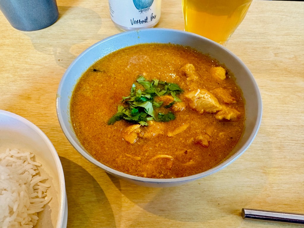 On the day I visited, Taste Tibet was offering momo – four or eight, vegan or beef – and four curries, with a mix of sides. They also served a biryani, or a feast option where you got a couple of dishes, dal, rice and a solitary momo for about fifteen pounds. If that pricing sounds keen, it wasn’t unrepresentative -curries weren’t much over a tenner and rice only two pounds fifty. Sides clustered around the five pound mark and momo were four for eight pounds. I ordered some momo, a curry and rice: that, with a tip included, cost me thirty pounds. “I’m in no rush” I said, “so it’s okay to bring the momo out first and the curry after that.”