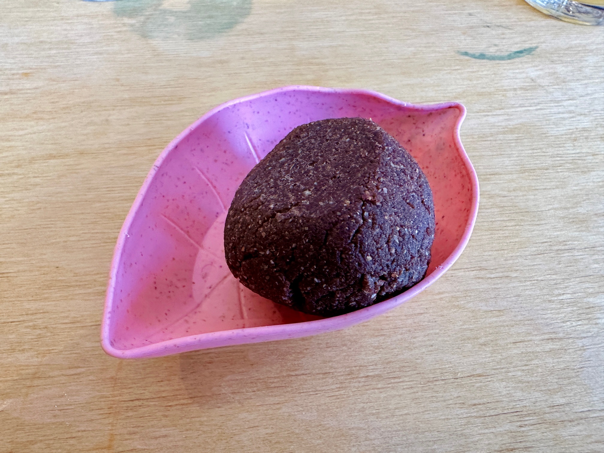 I didn’t want to leave it like that, and I fancied dessert, so I went up to order the only thing on the blackboard that looked like afters. Chocolate tsampa truffles – as seen on TV! sounded absolutely like my sort of thing, and only cost three pounds. I was too full to have the chai that should have accompanied it, but never mind.