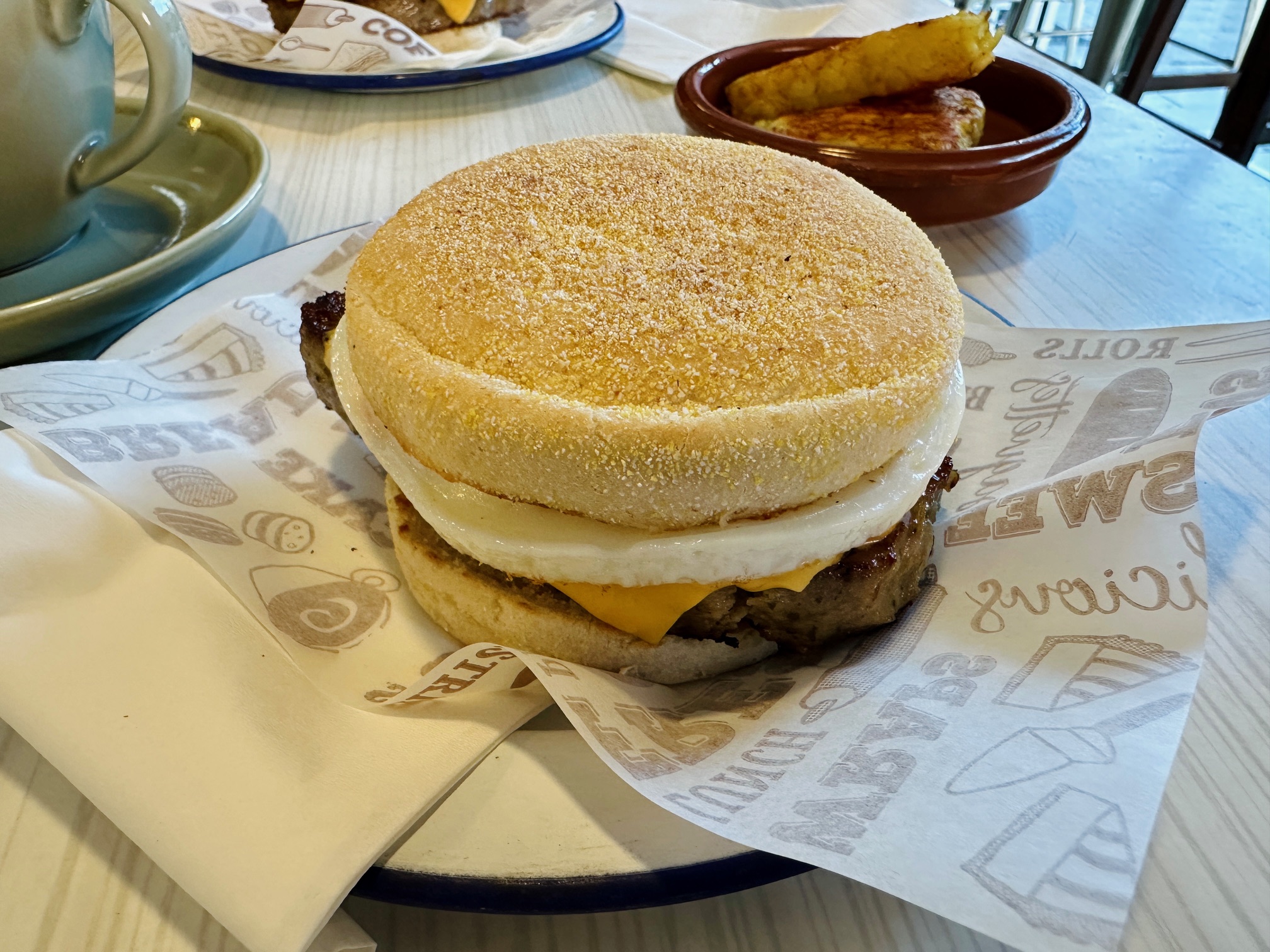 But the big draw at Fidget & Bob is, and possibly always was, the O’Muffin, their take on the sausage and egg McMuffin. I miss their square pucks of sausage meat, served as part of a brunch with their superlative scrambled eggs, but I understand why they stopped offering that. And the O’Muffin is far from a consolation prize. It remains one of Reading’s loveliest brunches, that floury muffin bursting at the seams with sausagemeat, fried egg, American cheese.