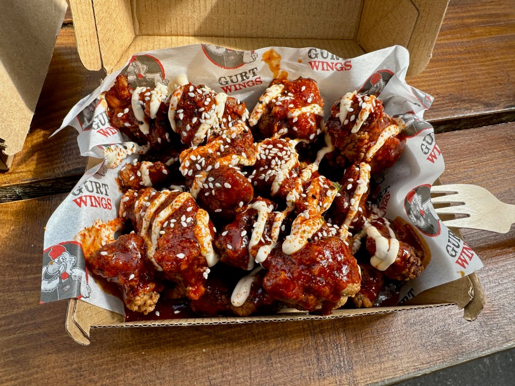 My final meal out of the first leg of my staycation was one of the biggest treats of all, Gurt Wings at Blue Collar Corner. I have been eating Gurt’s food since they first turned up at Blue Collar in Market Place, and I remember Glen telling me how good they were before he even landed them as a semi-regular trader. I recall trekking to Market Place regularly during lockdown, back when Glen wasn’t even allowed seating, and eating my chicken on the little concrete posts opposite Picnic.