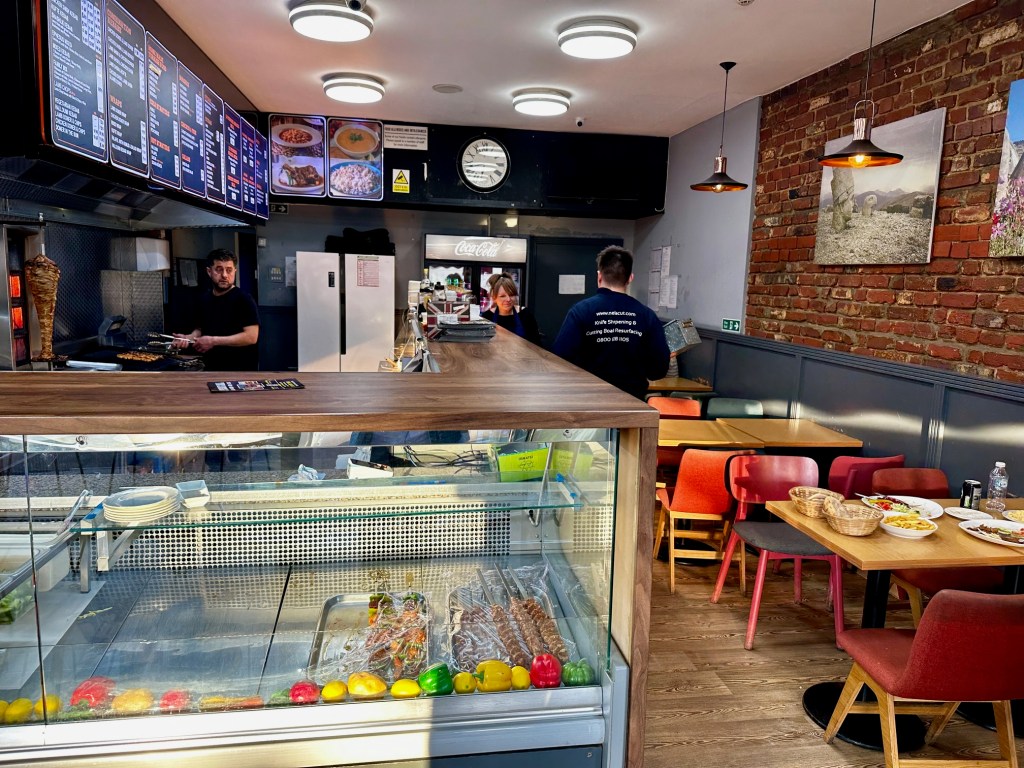 Service was brisk, no nonsense but far from unfriendly, and I did wonder whether a lot of their customer base might be Turkish. When I asked to pay up the lady I spoke to said, in limited English, that her colleague would have to do that. He called me “boss”, which just went to show how little he knew me. My meal for two, and you can safely say we over-ordered, cost just over forty-three pounds, and the chap waved away my attempts to add a tip to my card payment. I’ll have to carry some cash for that next time.