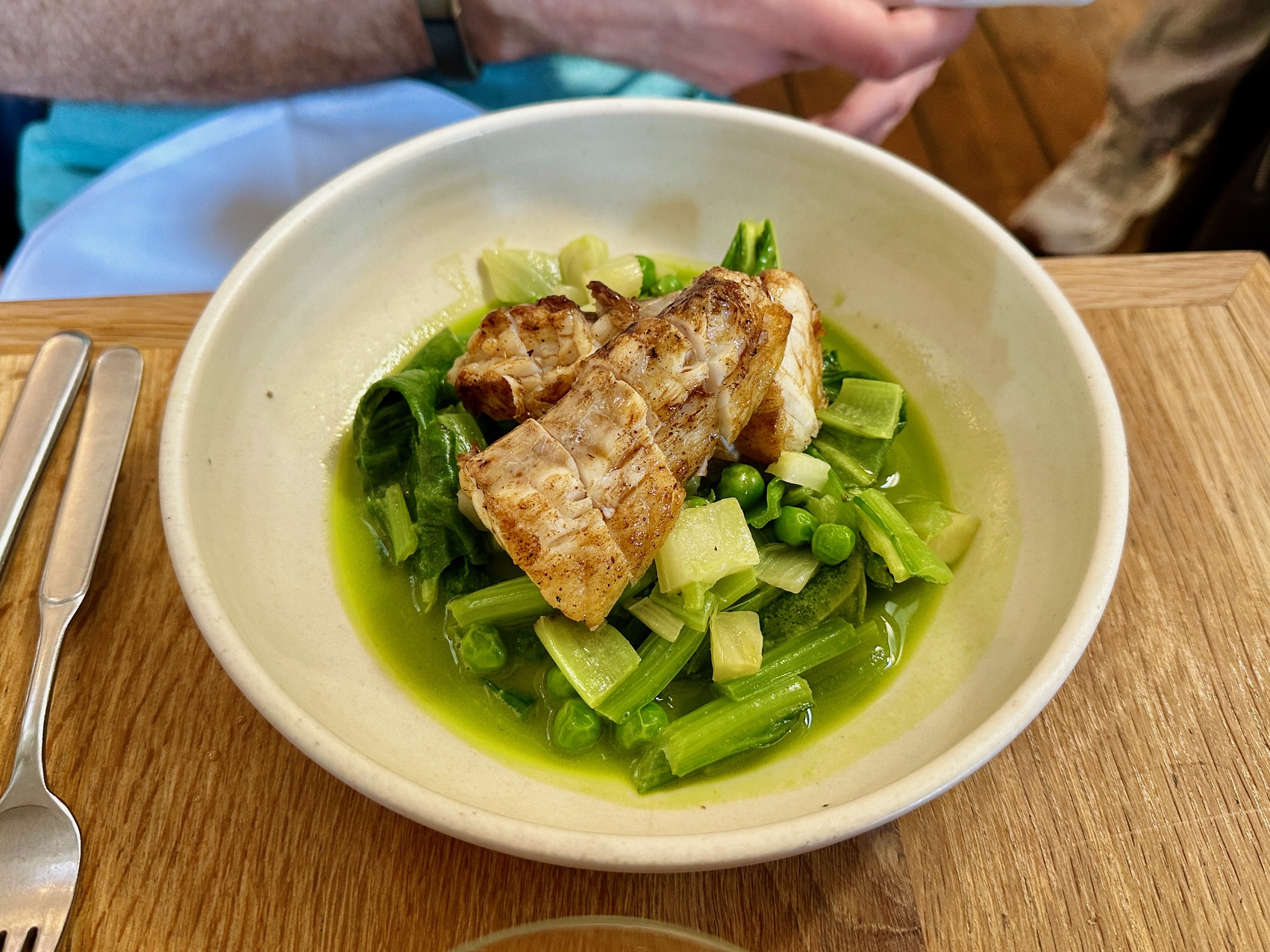 What was out of the ordinary, though, was our server coming back with a basket of little cubes of sourdough so we could personally mop up every last soupçon of that bright, herby olive oil: that I loved.