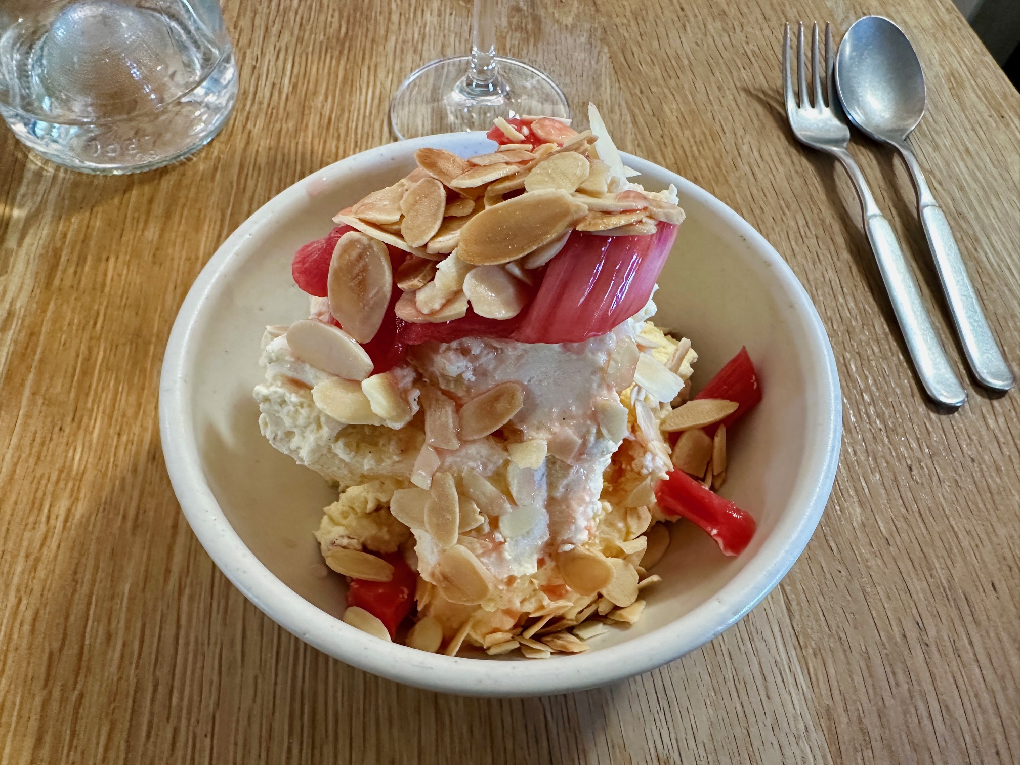 Whatever the explanation was, though, it was a really terrific dessert which brought matters to a close in masterful fashion. The cream, from Ivy House Farm, near Bath, was thick and ambrosial, the rhubarb still had bite, and hadn’t been stewed into sticky submission. The meringue was just the right level of chewiness and the extra touch, toasted, flaked almonds, was the icing on the cake. Twelve pounds for this, so again not cheap but ultimately worth every penny. When I looked back on the meal, now that it was done, I didn’t think there had been a single misstep. That rarely happens.
