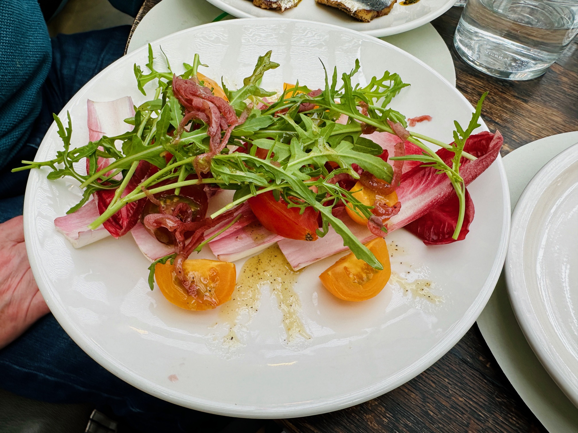 Well have no fear, because this dish – the generosity never starts – came with tomatoes and radicchio. Rocket, too, to match the rocket dumped in the centre of the Maltese Cross of disappointment that was those sardines. Double rocket, the treat nobody ever asked for: still, it beats pea shoots, I suppose. Why did the menu not mention that this was yet another salad? Was Gees just a glorified salad bar, and nobody had told us? Was it north Oxford’s upmarket tribute to Harvester, Gregg Wallace’s favourite restaurant? It was a puzzle and no mistake.