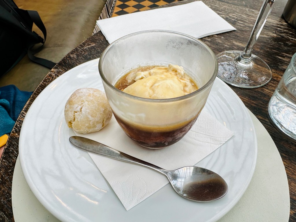 Would you have stayed for dessert? We nearly didn’t but felt like we had to see it through, like a disappointing box set. To Gees’ credit I asked who they bought their ice cream from and was told they made it in house. That probably swung it, and Jerry was delighted with his affogato, served with Pedro Ximenez.