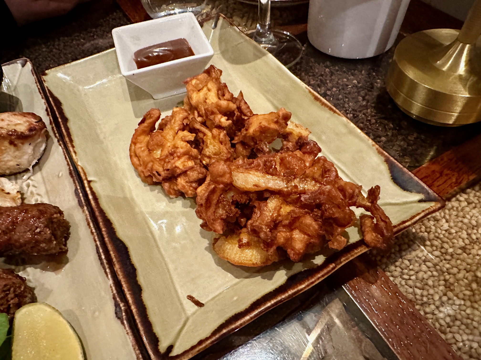 We’d picked a selection of things to share, and they were easily the best stuff we ate all evening. House Of Flavours offers three different sharing platters but Jo isn’t a massive fan of fish and neither of us wanted a vegetarian selection, however sumptuous, so the “Gourmet Sharer Platter” it was. The name might be a tad naff, but what was brought to our table absolutely was not.