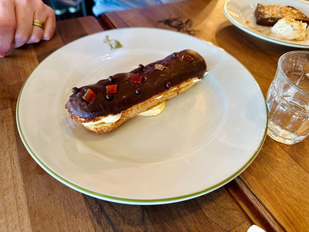 We’d ordered the éclair on the advice of our server and again, it had some nice touches – the candied orange on top, the Grand Marnier infused crème diplomat inside. But again, Lapin’s touch with the choux let it down. It was leaden rather than ethereal, and took some sawing through. As a finishing touch to the meal it summed up some of the inconsistencies, and gave me something to think about.
